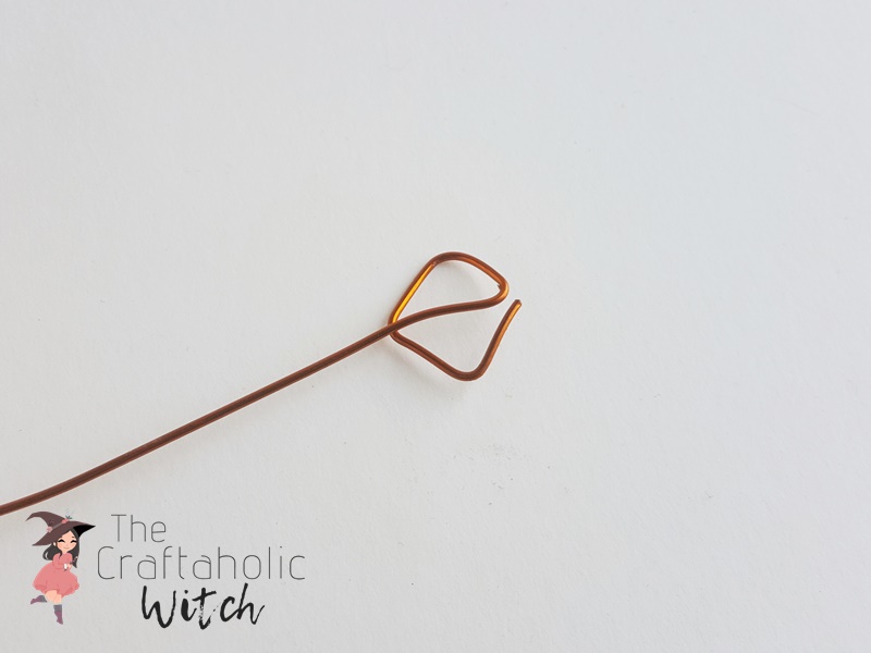 Bend the wire 4 times towards the same direction to create a square pattern; the size of the square should be smaller than teh diameter of teh tissue paper roll. Bend the current wire (last bent part) diagonally inside the square pattern.
