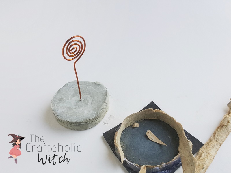 After 24 hours check if the cement is dry? If it's dry, then carefully take off the cardstock and toilet roll container. First rip off the toilet paper roll piece and then the bottom cardstock.