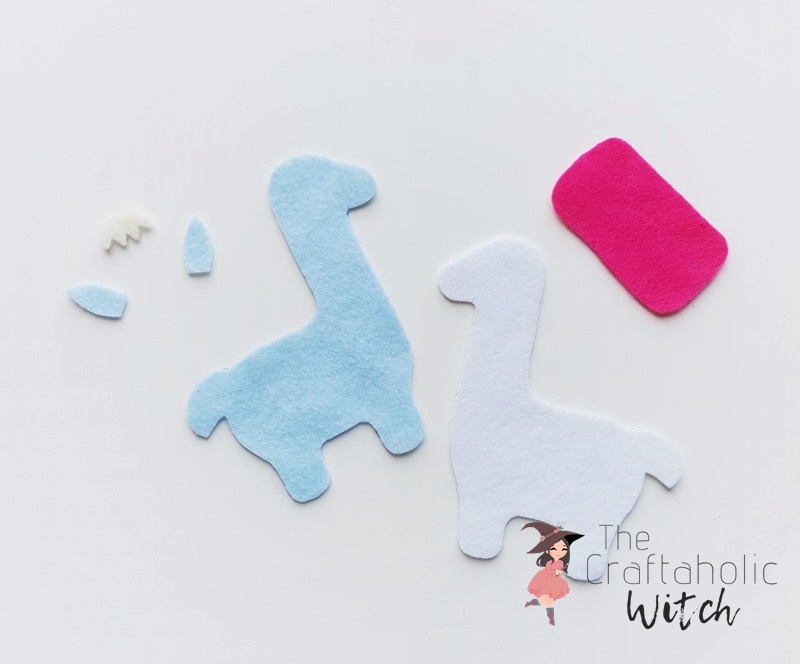 Select felts for the plush. I’m using white felt for the llama and hot pink for the saddle.