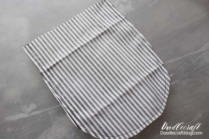 Next, fold your fabric in half with the right sides together. Sew a big elongated half circle.