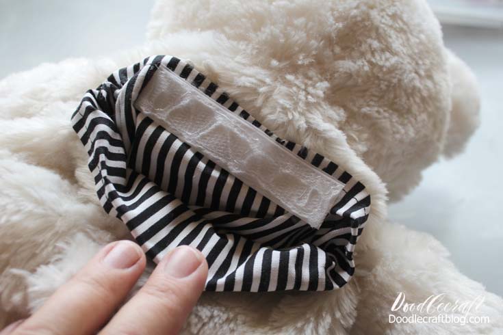 Begin by cutting a 5" slit across the back of the teddy bear. Stitch up the center back seam again, since the main seam was just cut.
