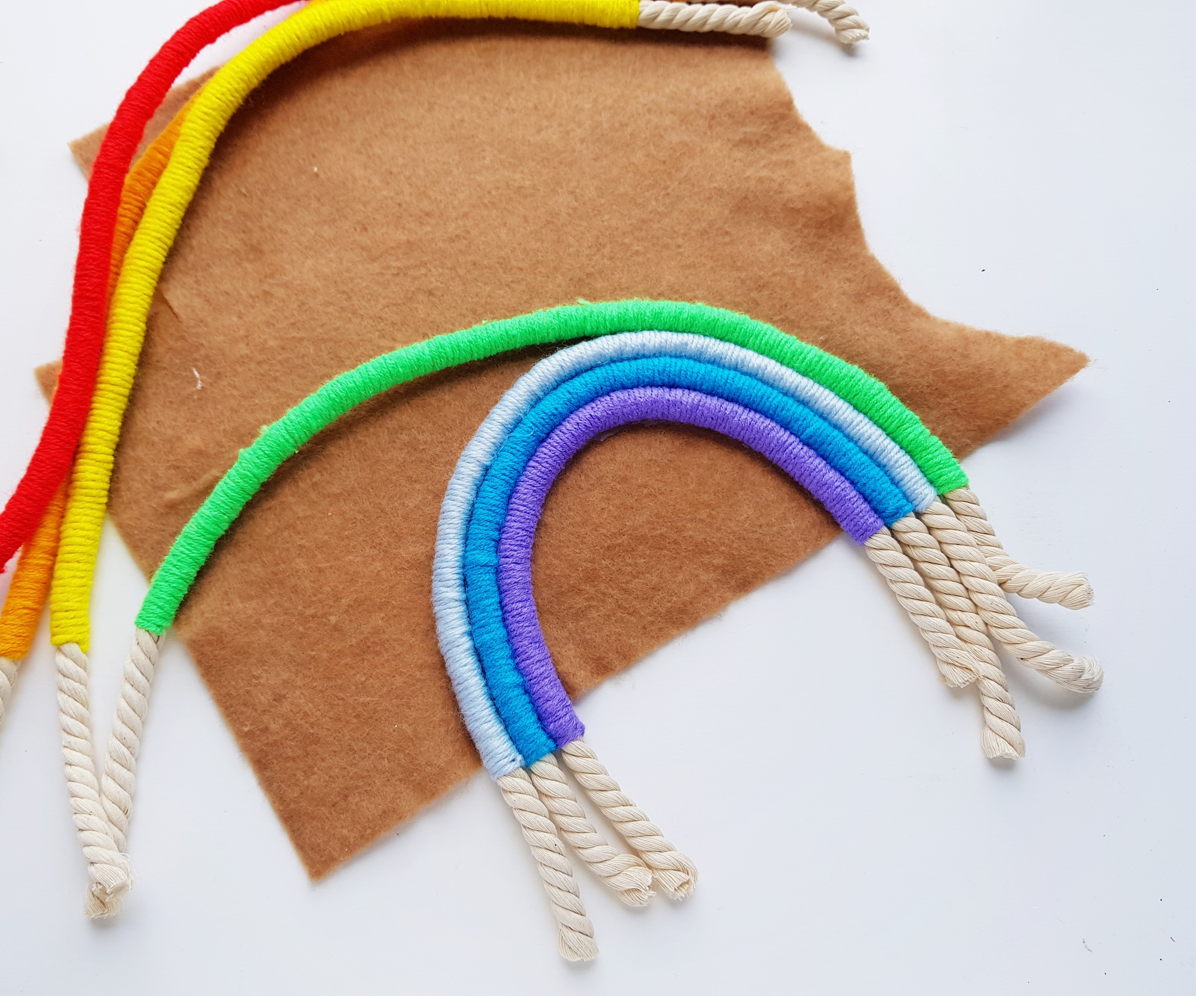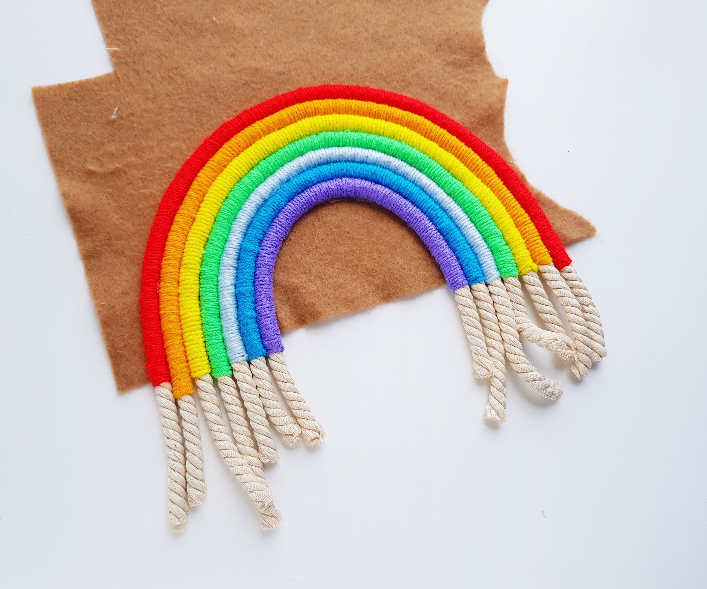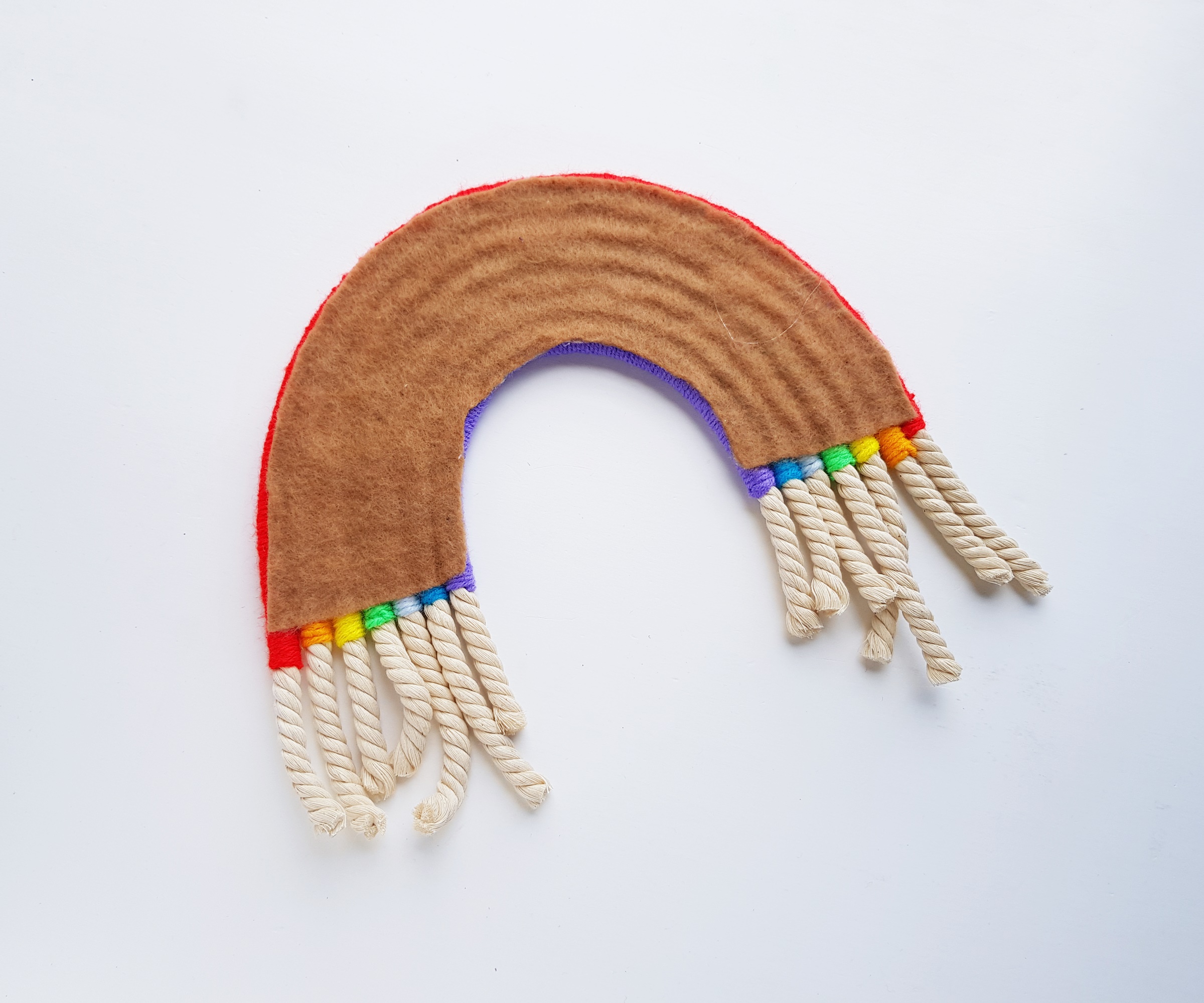 Make sure that the felt is not visible from teh front side of the rope rainbow.