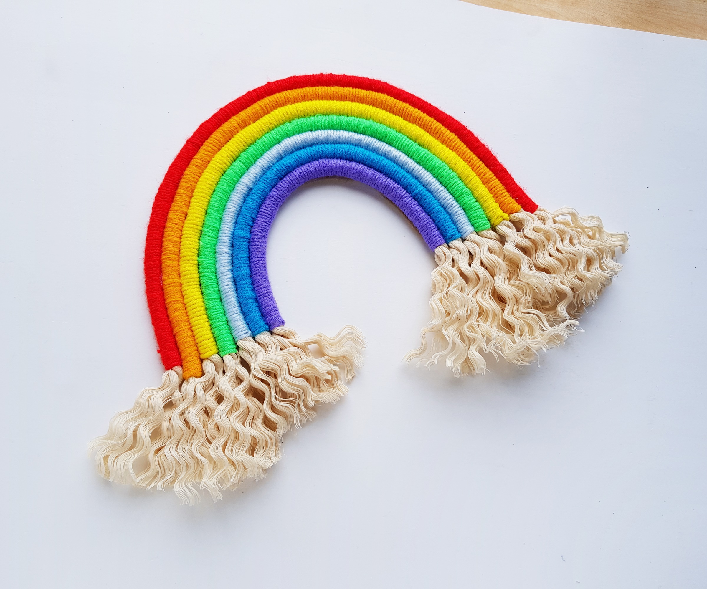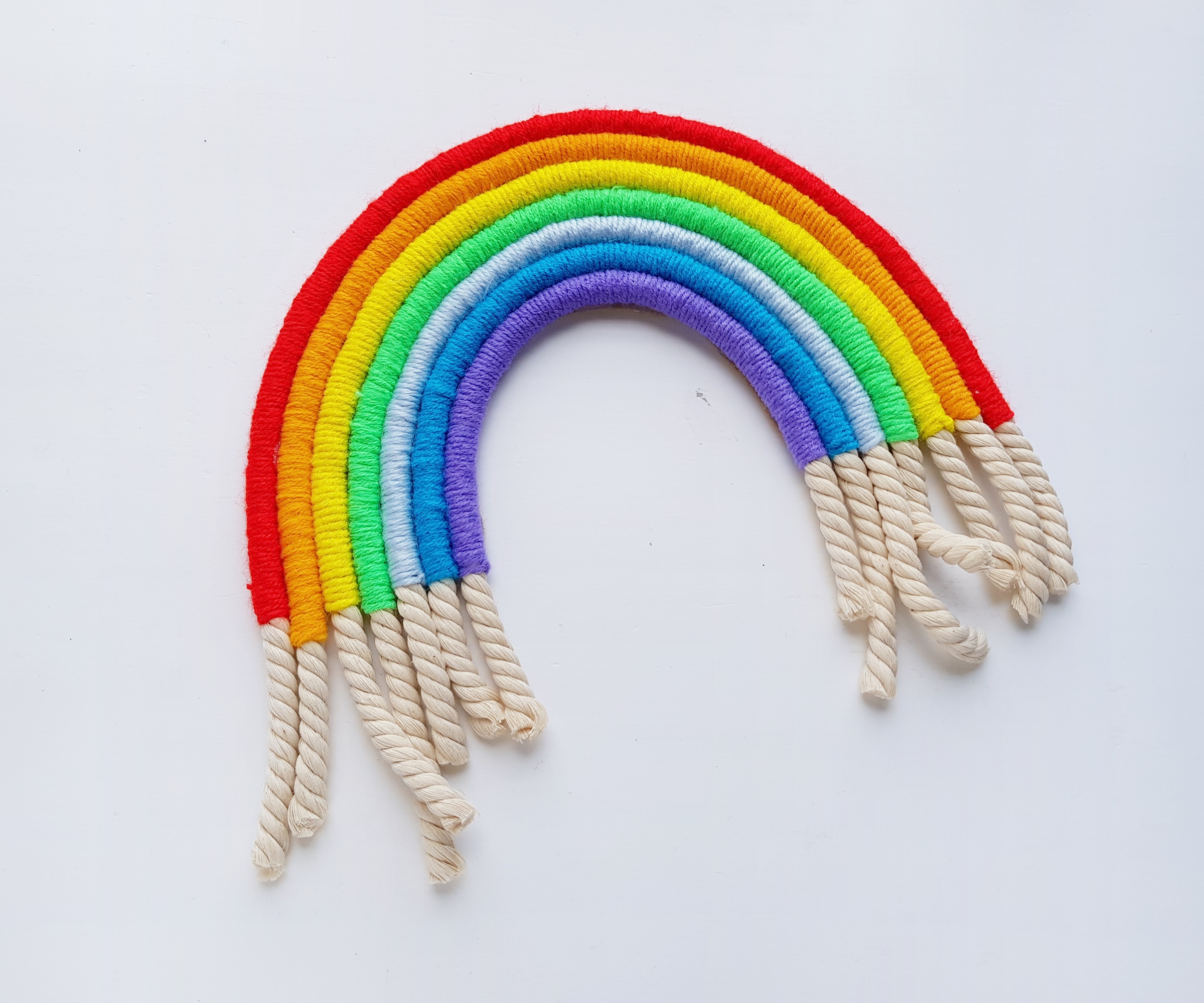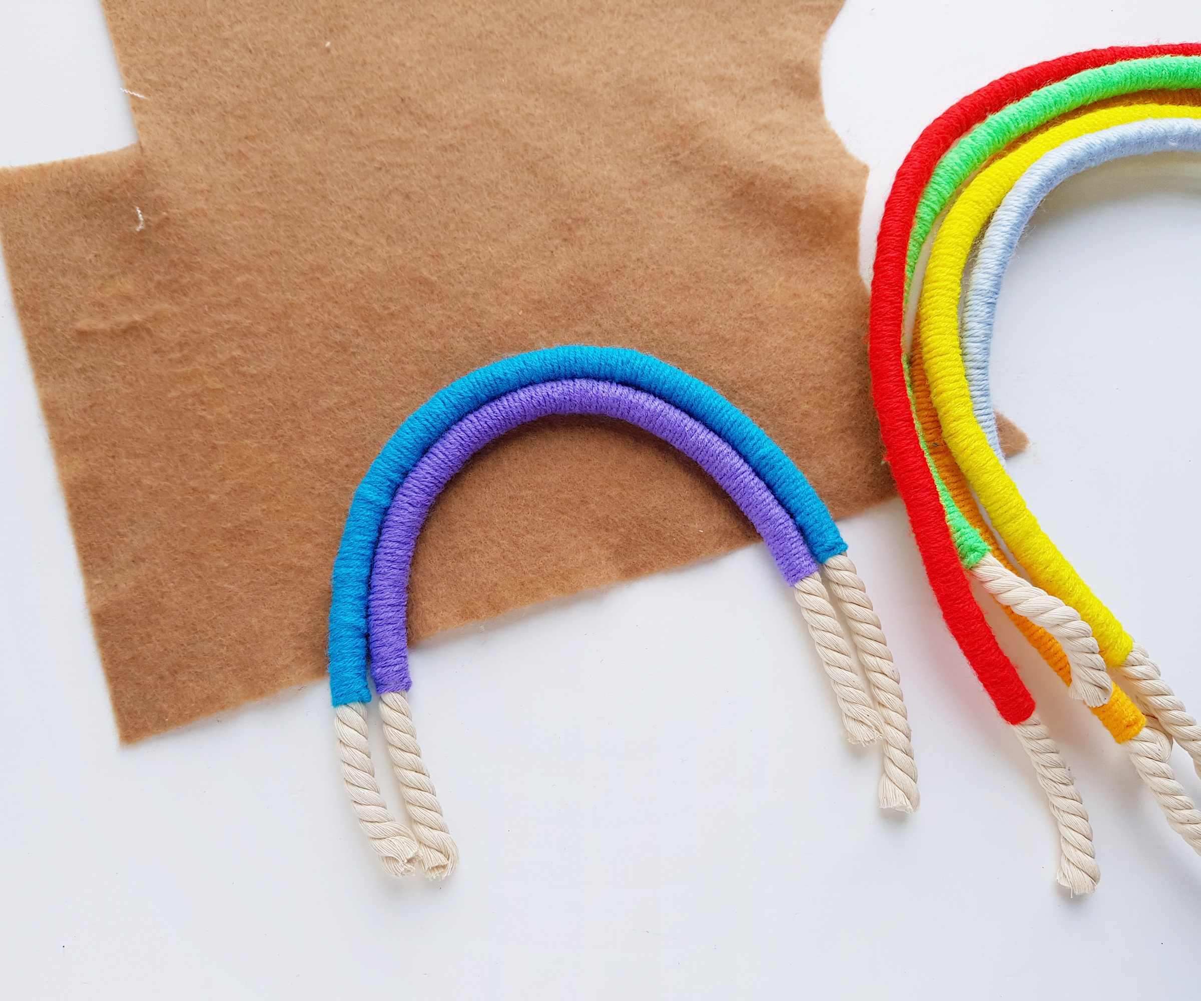 Make sure that the felt is not visible from teh front side of the rope rainbow.
