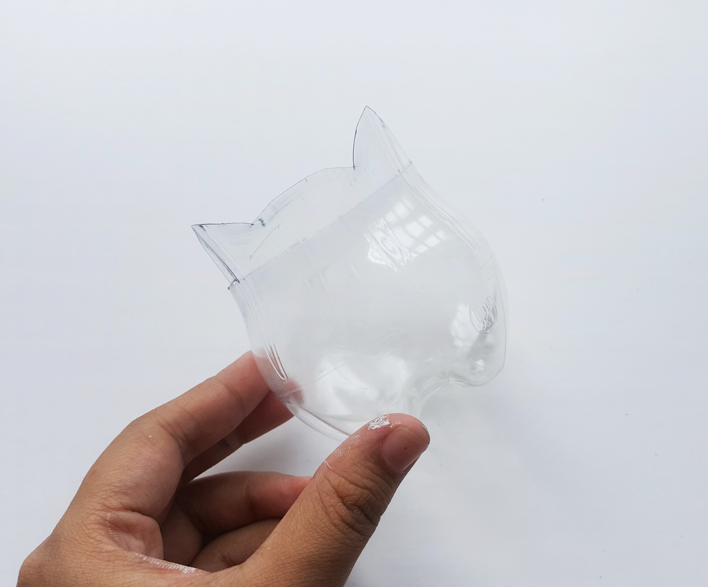 Determine the height for the Bulbasaur planter and then use a marker to trace the ears and the top end of the head for the Bulbasaur on the plastic bottle, at the determined height.