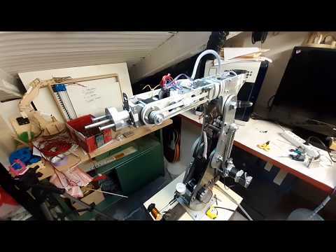 At the moment to run the tests I'm using the software of Chris Annin (www.anninrobotics.com) but the math written for his robot doesn't fit perfectly to mine in fact some areas of the work area I can't reach them because the calculations of the corners are not complete.