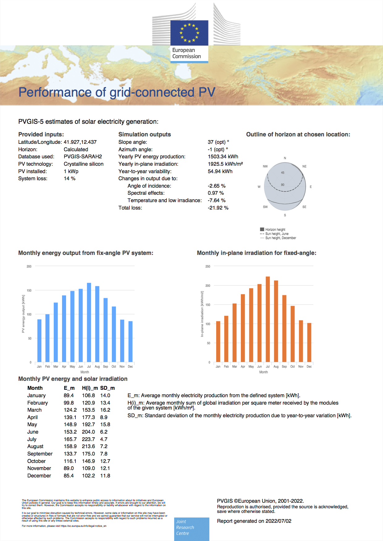 There are many, the most used is the European Union's PVGIS Photovoltaic Geographical Information System. I use it often, both in the design phase and in the test phase.