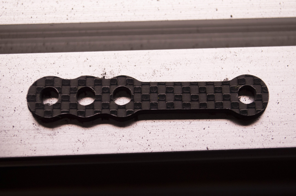 These parts are optimized for 2.5mm cuts of carbon fiber plates.