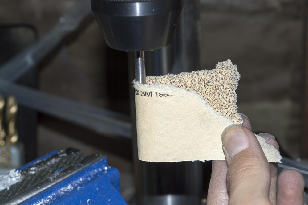 For all the plates I made sure to redrill the hole with the 3.2mm bit. This created an accurate sized hole and cleaned up any frayed edges. For the sides I used a cheap sanding drum to get rid of the frayed edges.