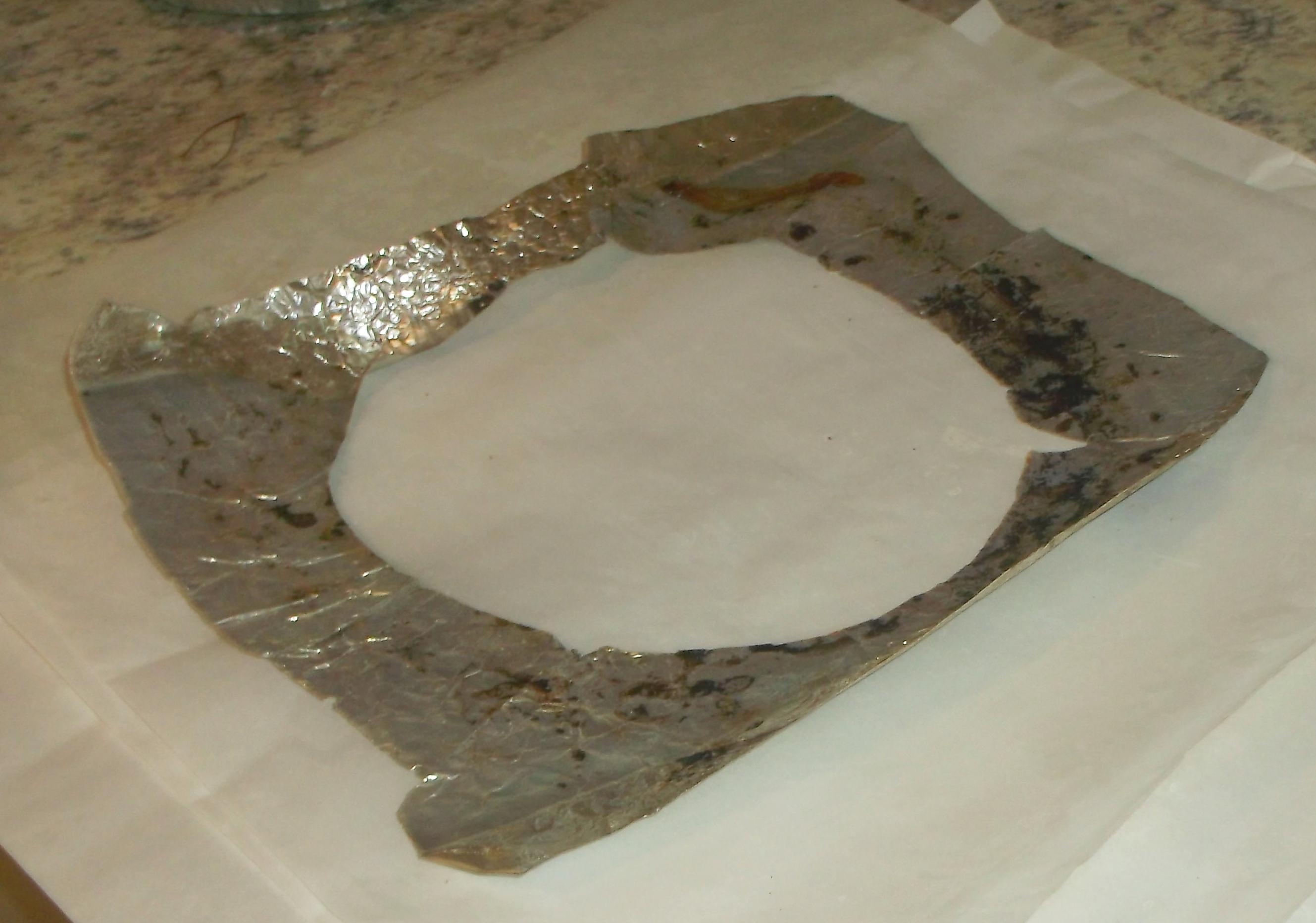 - A crude crust protector ring cut out of aluminum foil** or an 'Adjustable Pie Crust Shield" from Amazon***