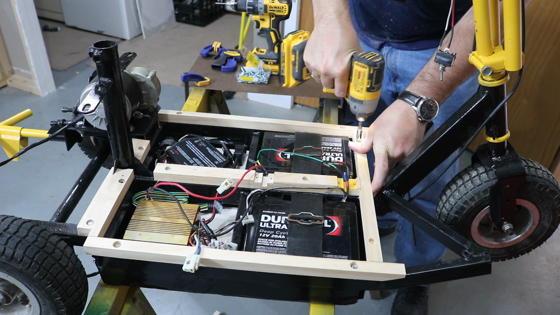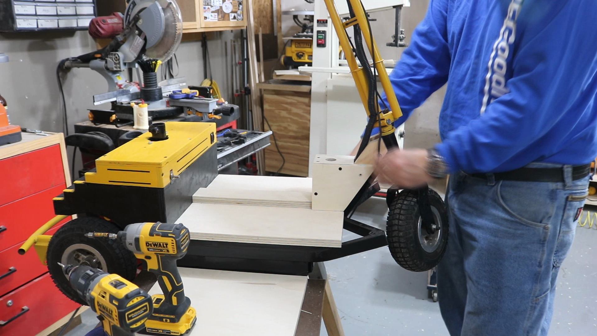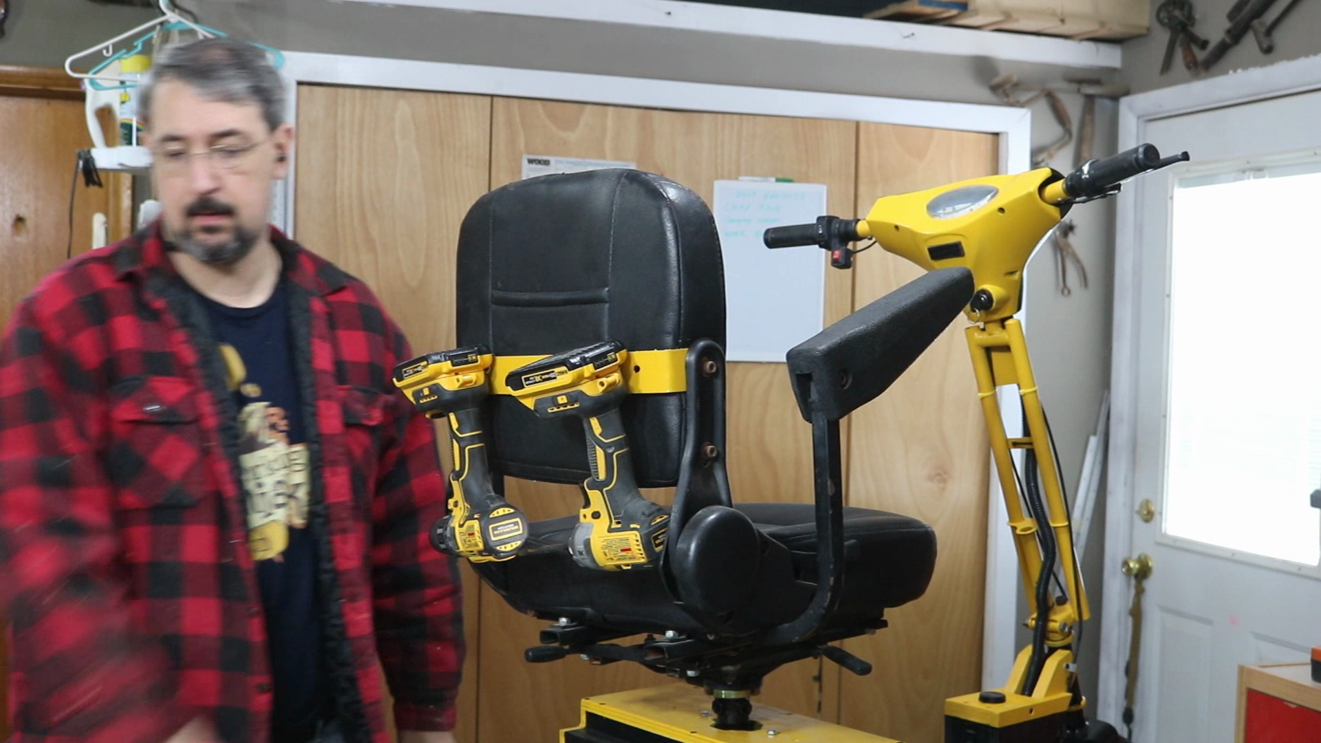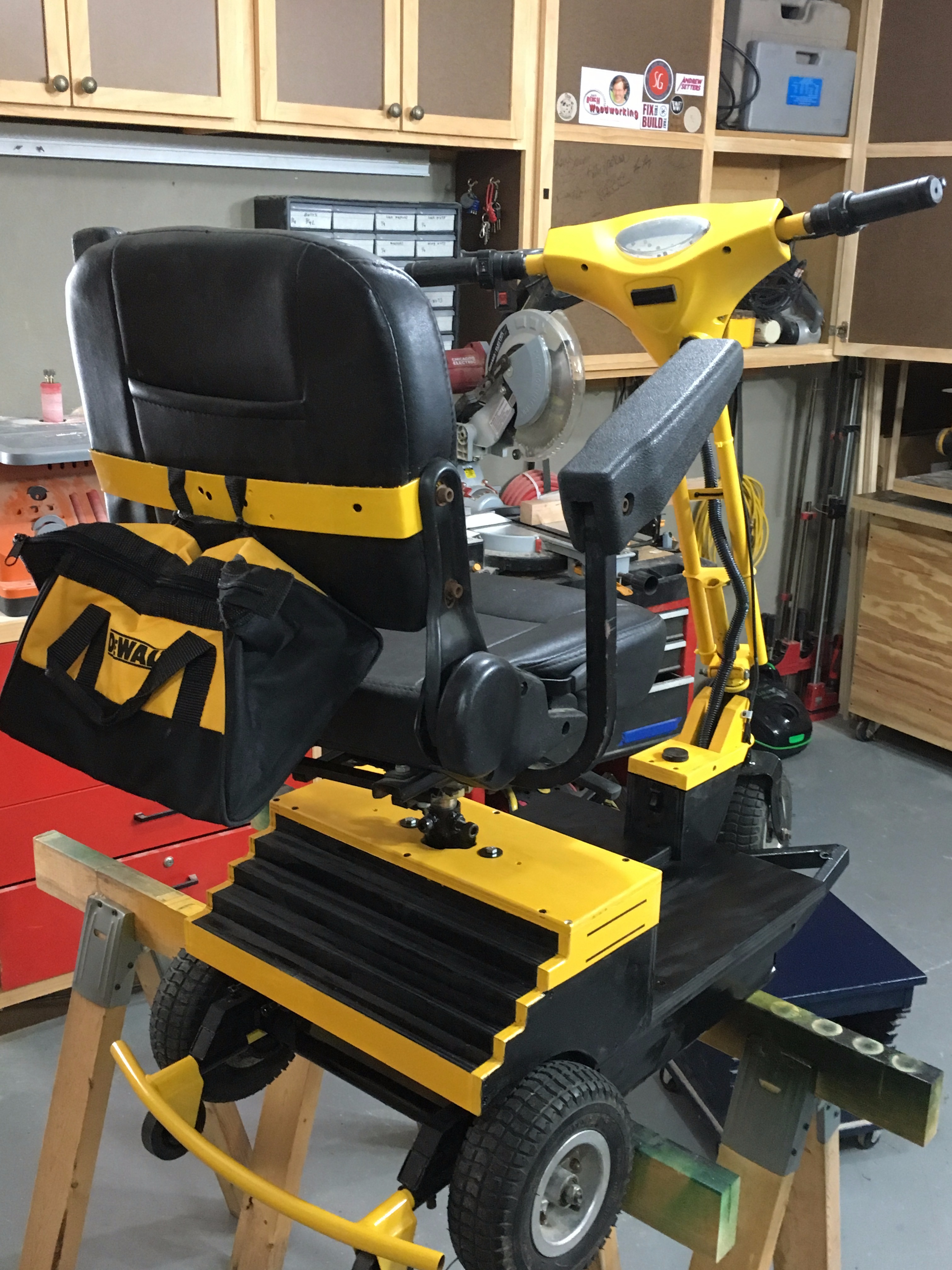 While at the woodworking show in Indianapolis. My wife and I seen several mobility scooter at the venue. While holding all the stuff I bought and trying to find somewhere to sit to eat, one of these carts com rolling through with his products and a his food. I thought to myself that would be perfect for a place like this. So the next day, more out of curiosity then anything I looked on Craigslist for a mobility cart. I found a listing for $25.00, after reading the description I came to the conclusion that this cart worked and the owner just didn’t know how to fix the wiring. The owner just wanted to get rid of it. So I went after it. hints to the beginning of the build.