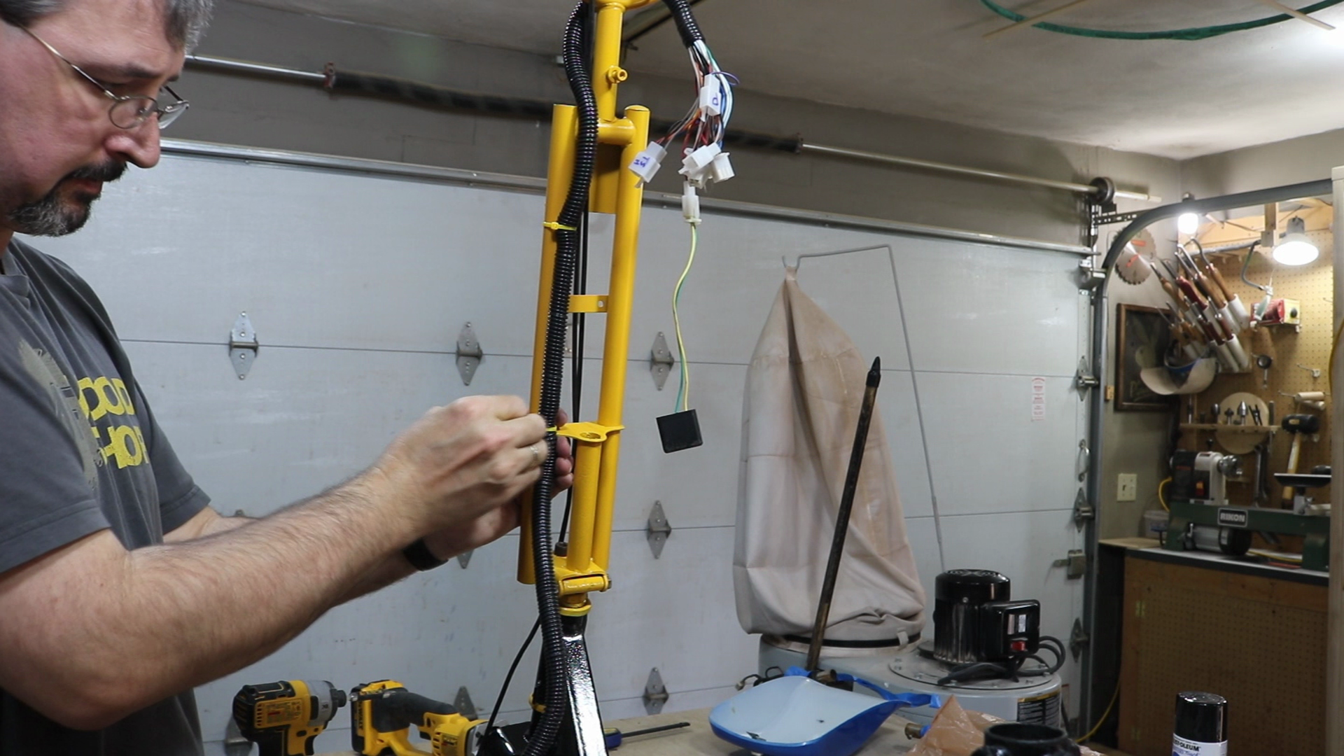 The same treatment as before to these to wire runs. Then I put together the main dashboard and headlight assembly