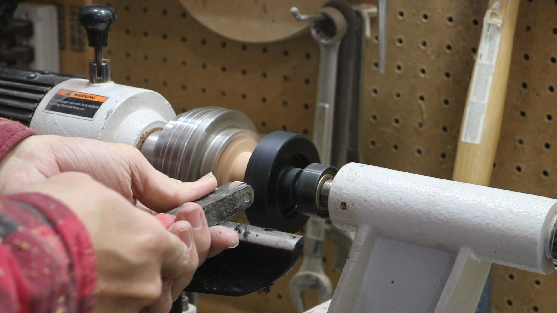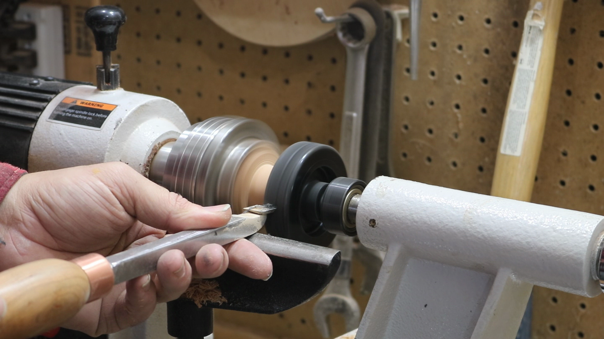 The rubber wheels for the wheelie bar was just a bit chewed up. I mounted them to the lathe, cleaned and trued the tread. Then using my Texturing tool on the lathe gave it some new tread and life.