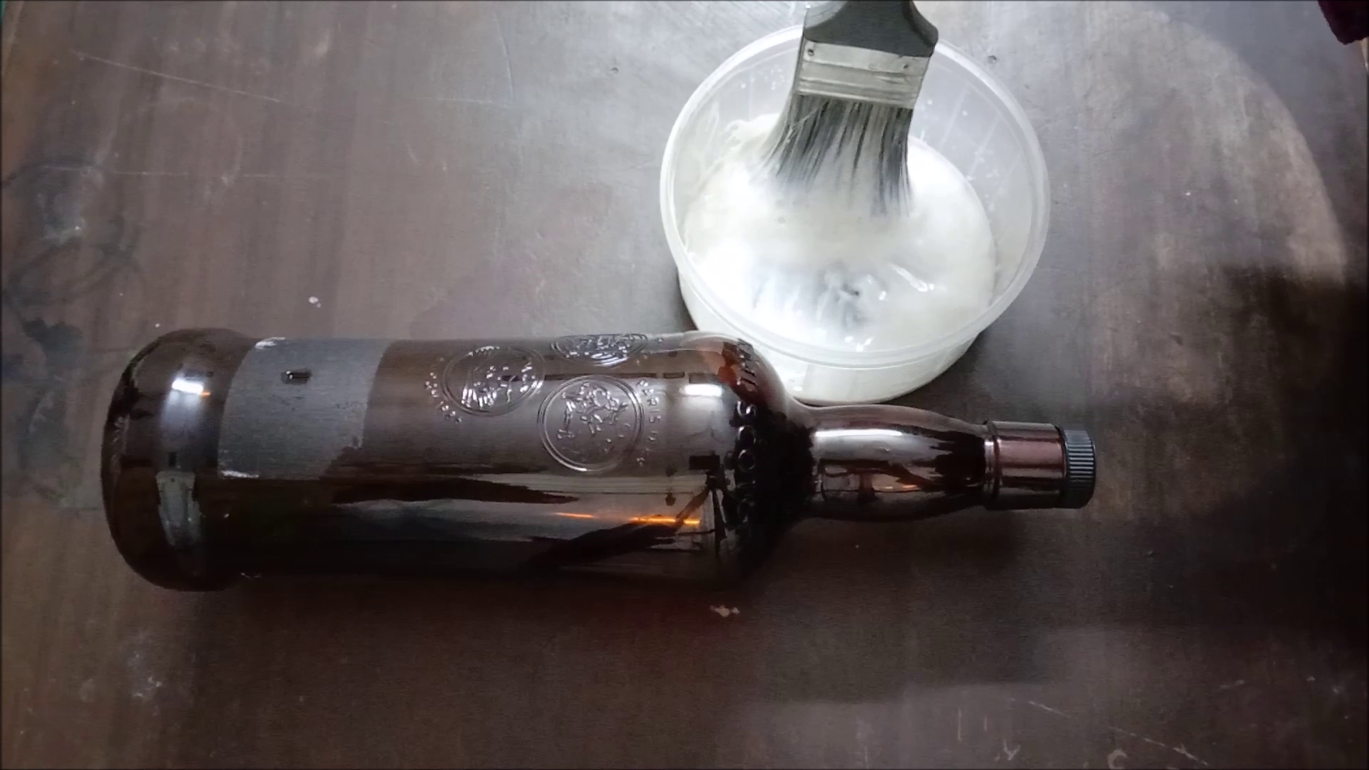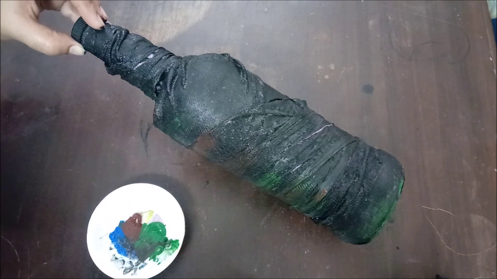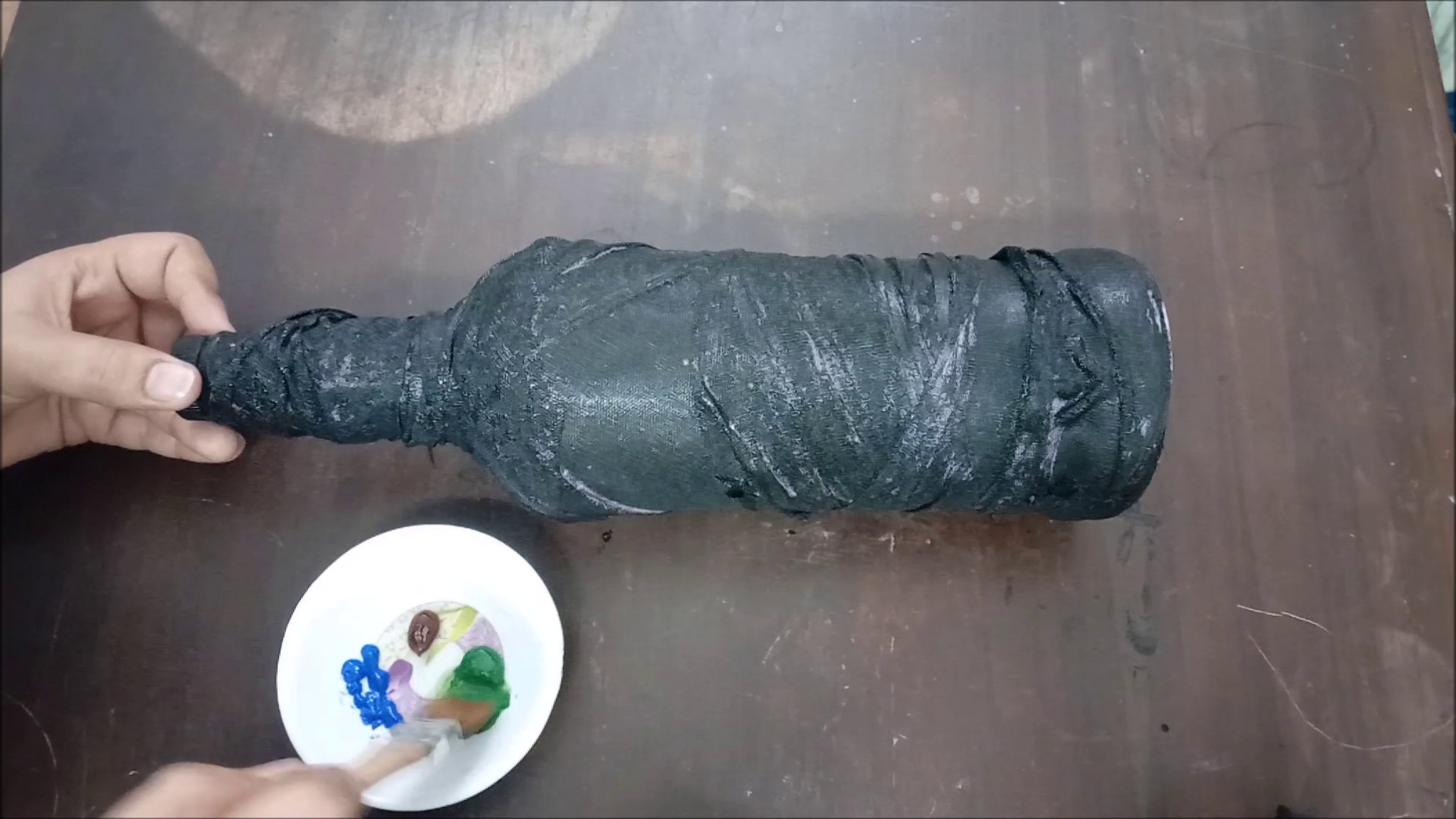 - Apply black acrylic colors on bottle.