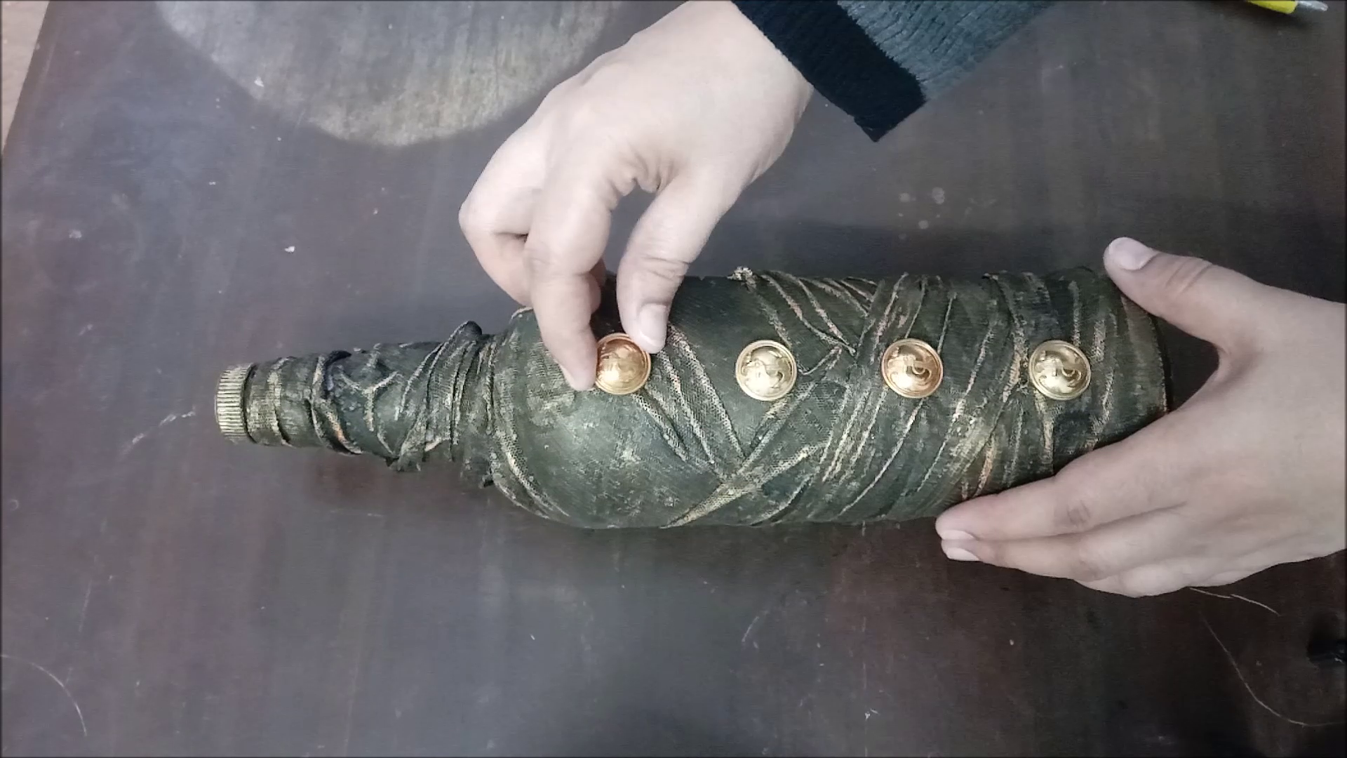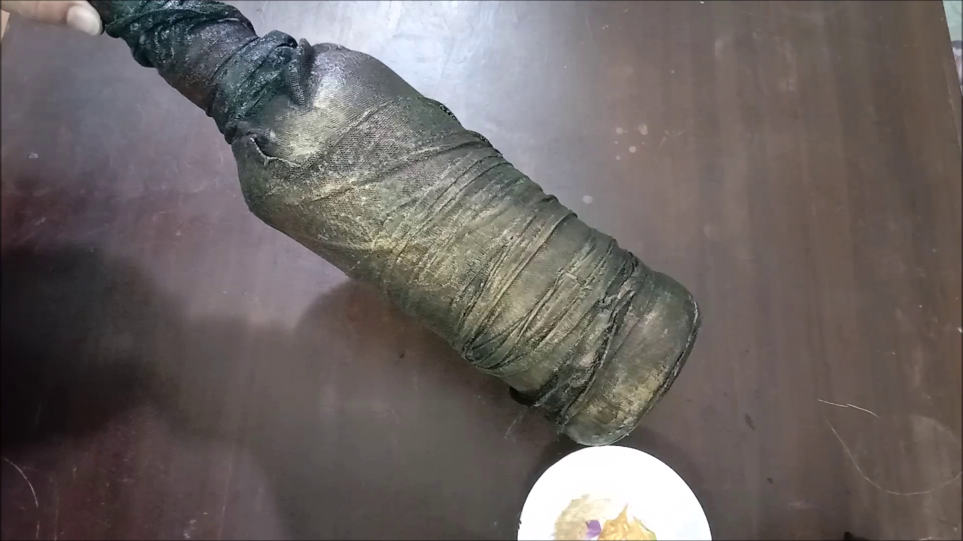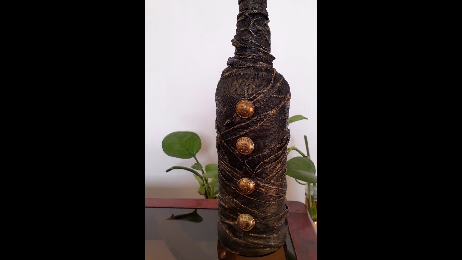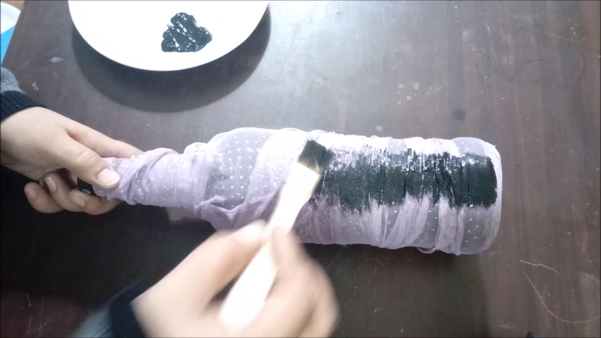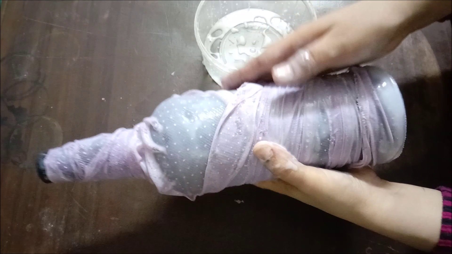- Dip net cloth in glue and wrap on bottle.