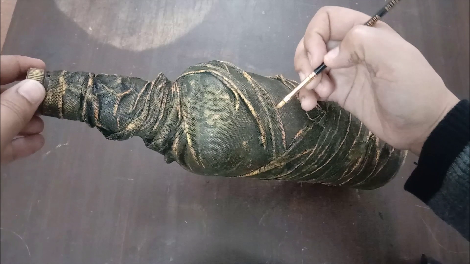 - Apply golden highlights using fine brush.