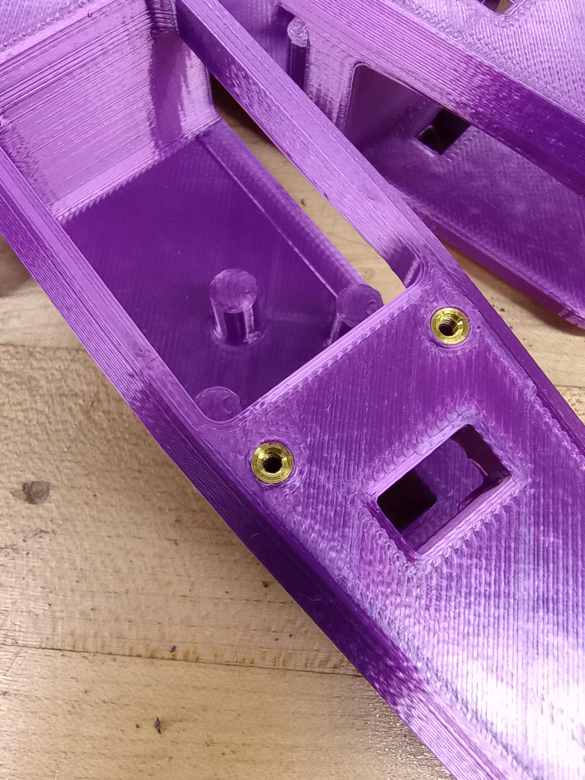 The next step is to post-process the parts and removal of support material. After the removal of the support material, I lightly sanded the parts using high grit sandpaper. Post processing the parts, I inserted the heat-set inserts using a soldering iron into the designated holes of the upper leg, the main chassis, top cover (both parts) and the acrylic top-plate