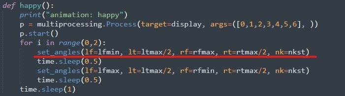 The next step would be using the triggered emotion to run the respective facial expression. With Ewon, the facial expression is noting but moving its ear and neck using servos and changing the display to change the eye movements.