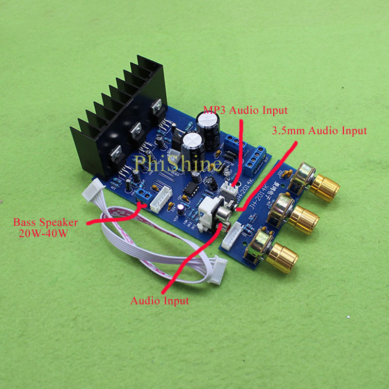 This subwoofer amplifier has a 40W subwoofer output and 20W left and right output.