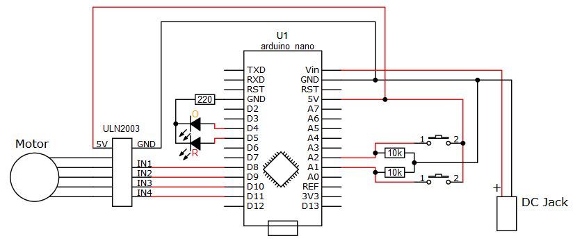 Once printed, screw in place the two PCB (Arduino + ULN2003 driver) and place the components in the box.