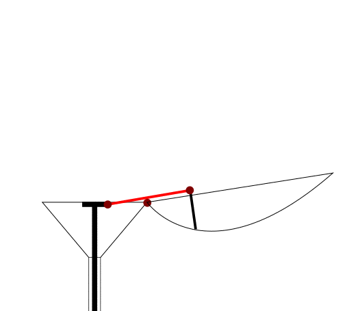Petals are currently missing one crucial part - petal pin. This hinge makes the petals move. The hinge sits on a bar (see image above) which is soldered to each petal parallel to its base. Petal pin needs to be above the surface of the petal in order to allow it to fully open as you can see on the animation. Make yourself one such bar with a hinge from tubing and solder it to the first petal. This will need a lot of experimenting with the size of the bar and its distance from the petal base to allow the pushrod to fully open and close the petal. Use trial and error method. Solder the bar to a suitable position and add connecting rod between the pushrod pin and the petal pin. If you have your pushrod in the upper position and your petal in a fully opened position, space between pushrod pin and petal pin is the length of the connecting rod.