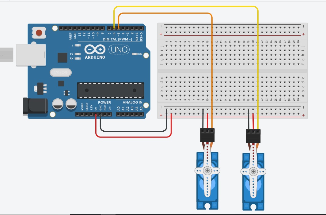 - After everything is done last thing to do is test if it works. To test first make sure that servos are properly connected to arduino and sketch is uploaded.