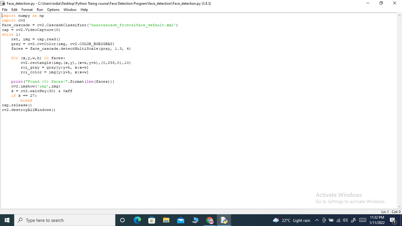 This code can be used for raspberry pi projects also . In this setup I am using the laptop.to detect the face ,eye and mouth .