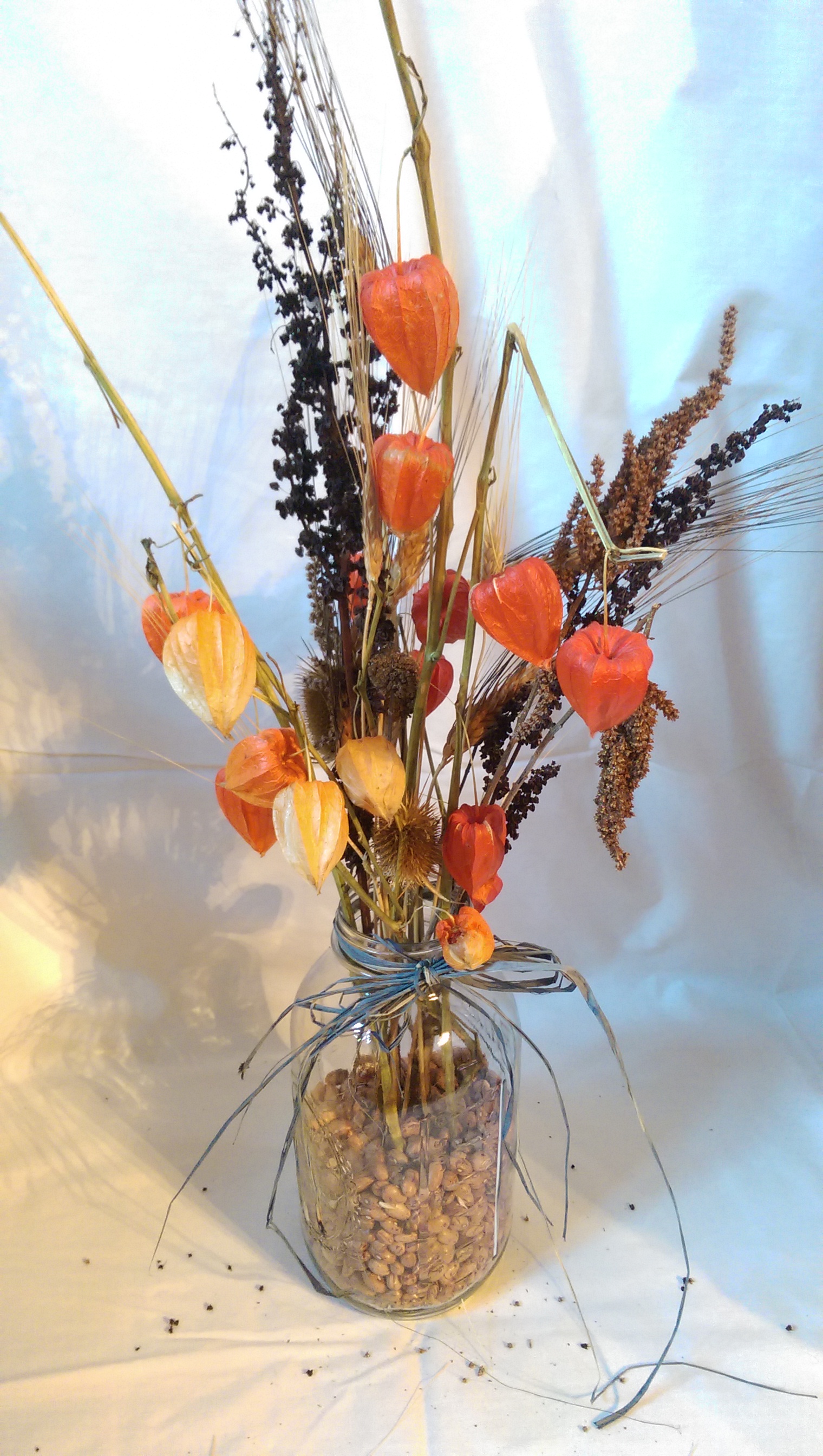 Depending on the time of year you pick your fresh materials, you may need to hang some of them to dry. Most of the plants they picked were already pretty dry since it was late in the summer, but they did have to hang the Japanese lanterns.