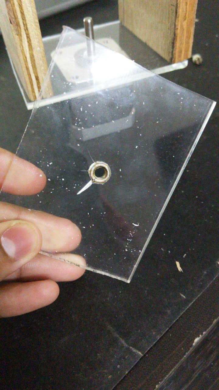 The Servo's after successful modification (4 out of the 8) now need to be mounted. I found it easy to cut holes with a drilling machine with a circular saw drill bit attached. The servo edge is around 2 cm hence cutting it with a circular saw drill bit is the most efficient. Make Sure there's a gap of 8-10 cm between each servo so as to have easy threading , triggering and placing of the bottle. Now, After cutting the holes I found it best to glue gun the top of the servo with a good glue gun dab and sliding the edge of the servo into the cut edge. This cutting and mounting process is a bit dependent/ Trial And error process.