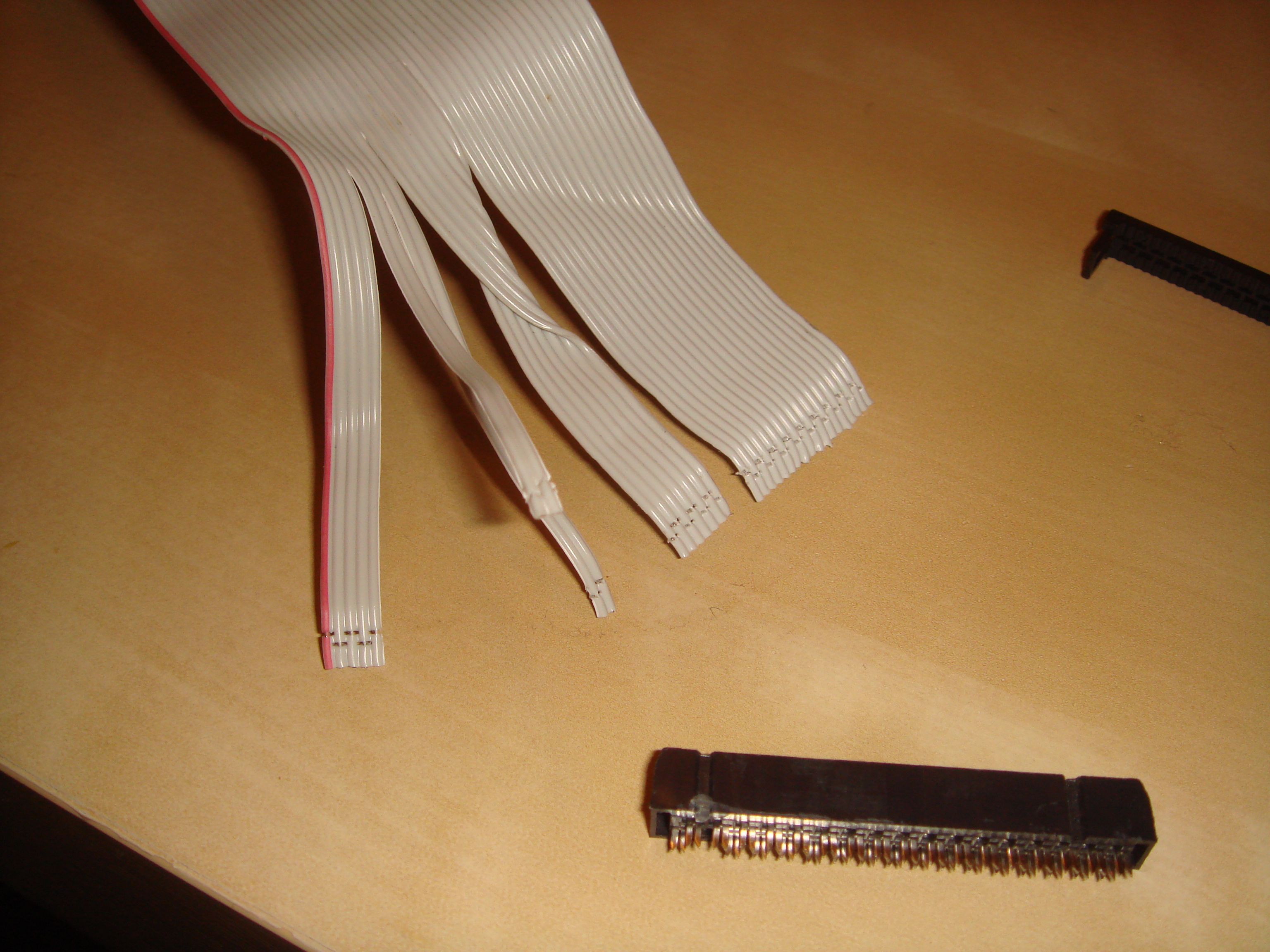 I used the old floppy cable so I was salvaging as much as possible, all the bits joined together makes it nice and neat but this cable doesn't like solder. Just use some small gauge copper wire if you have some handy. Most of the lengths I used were no more than 10 cm (about 4 inches)