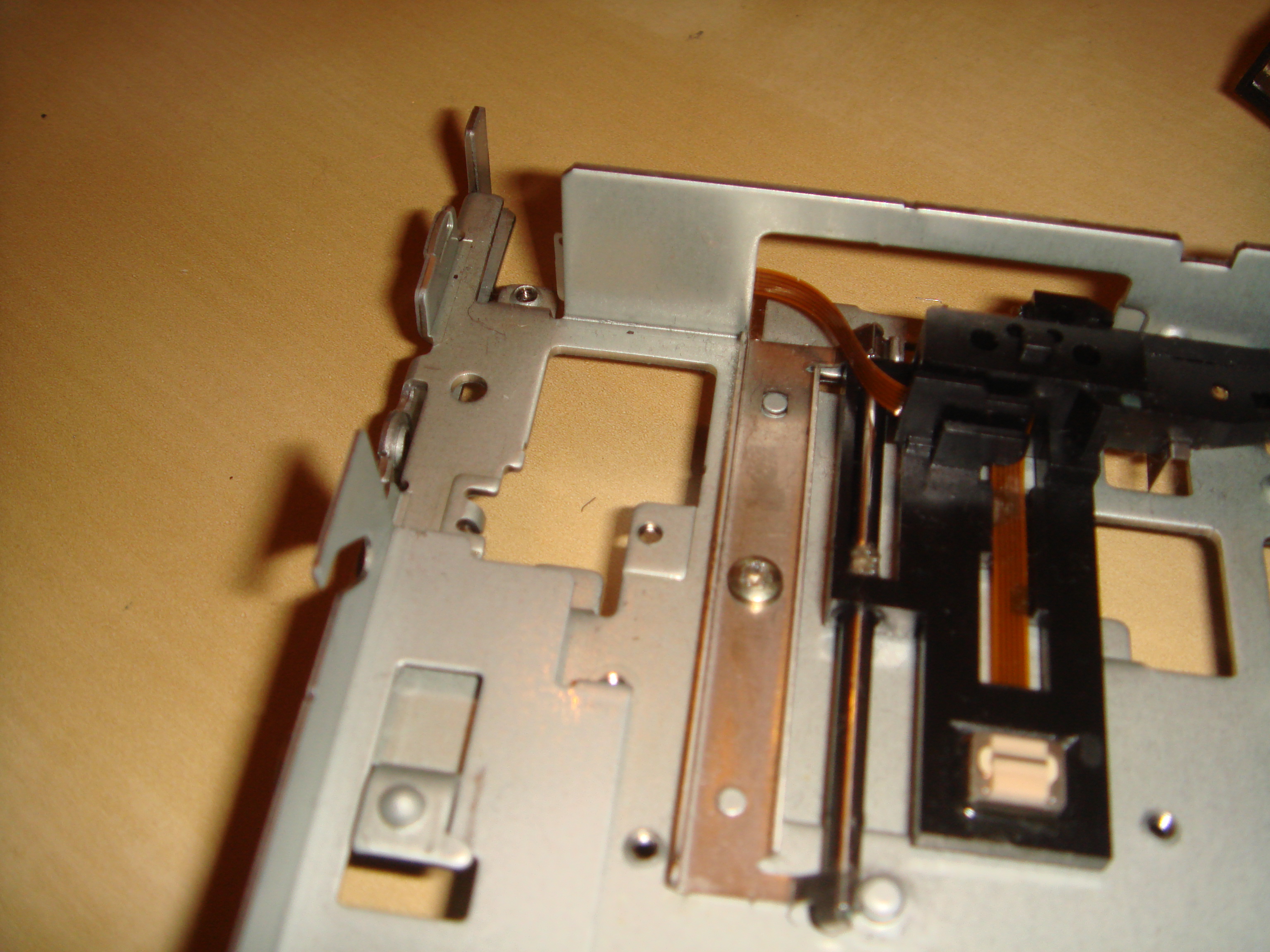 Starting with the middle part of the floppy drive and the bottom half of the tray (the part the eject button attaches to.