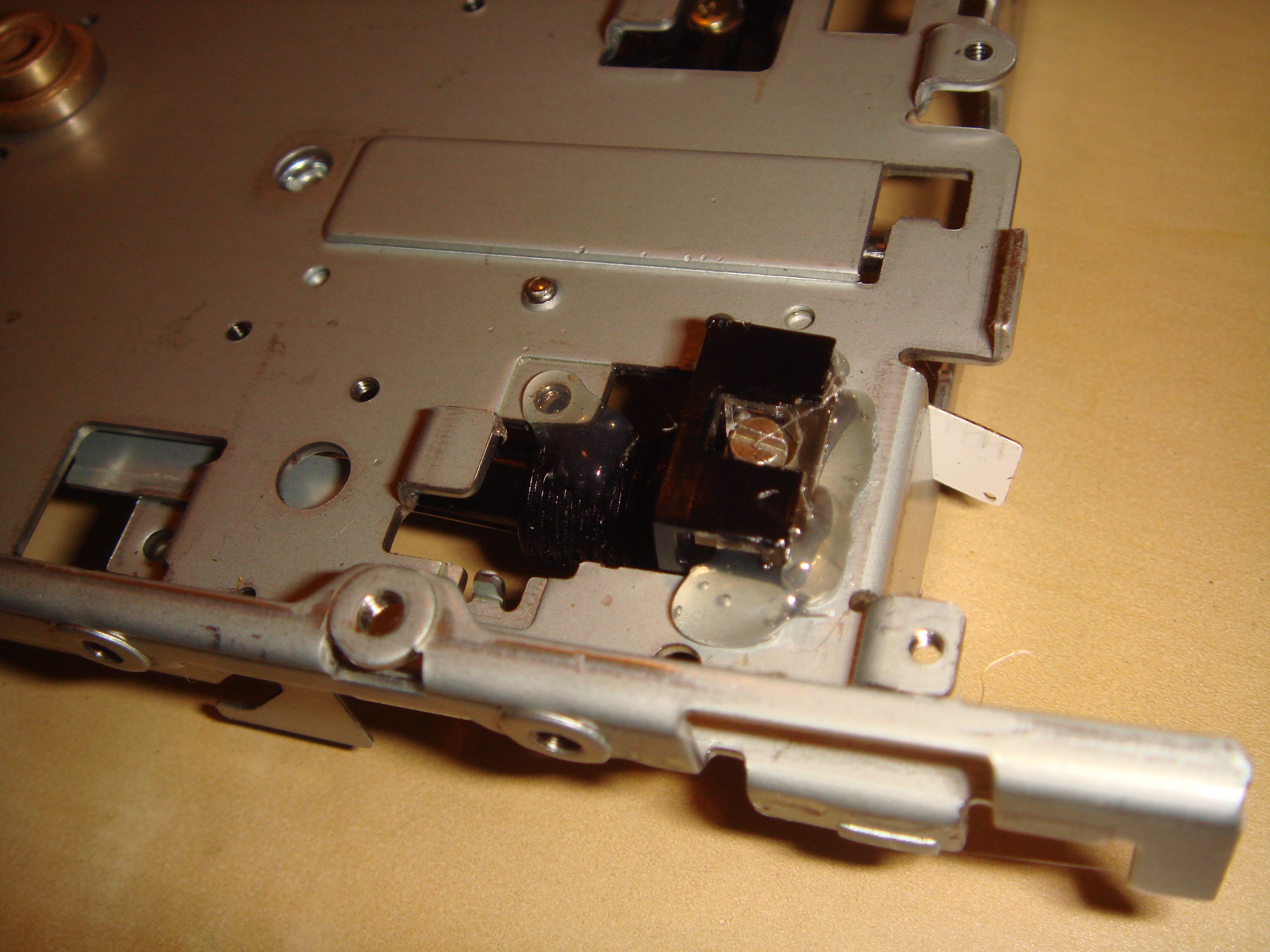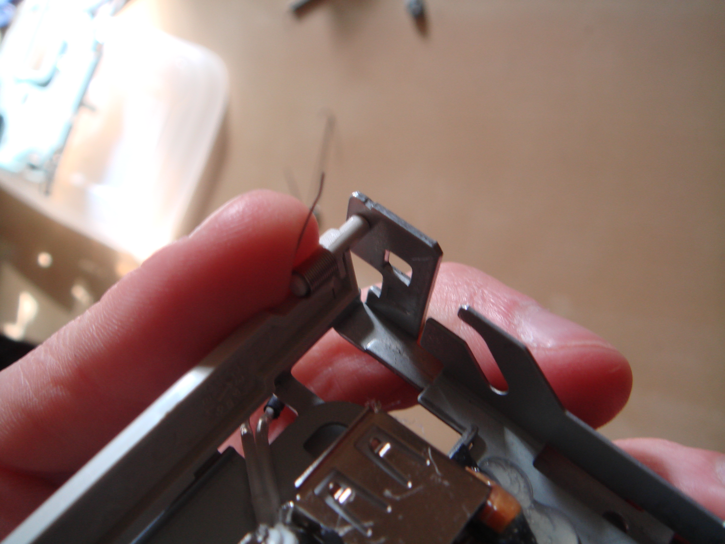 While bending the spring back put the top cover of the drive back on - this is fiddly the spring is usually fixed on to the top of the tray but were not putting that back in to make room for the hub.