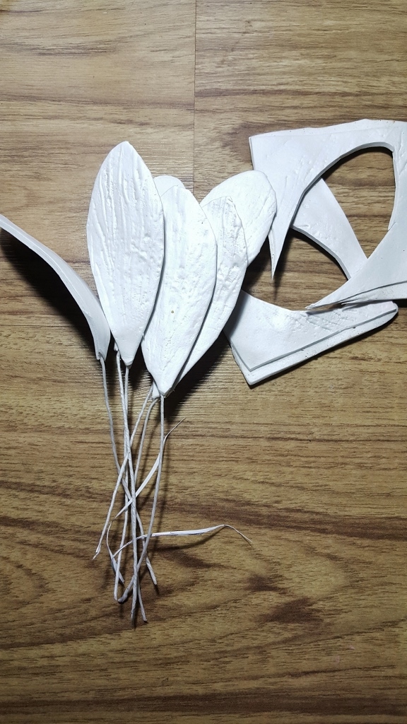 The clay comes ready to use. I just added some glue and let it dry a bit and then made the shape of a large leaf. The reason for the glue is when you heat the clay up fast it might be brittle an crack up. The glue holds the clay up pretty well and does not make it very brittle. I used a sharp tool and made petal like markings.