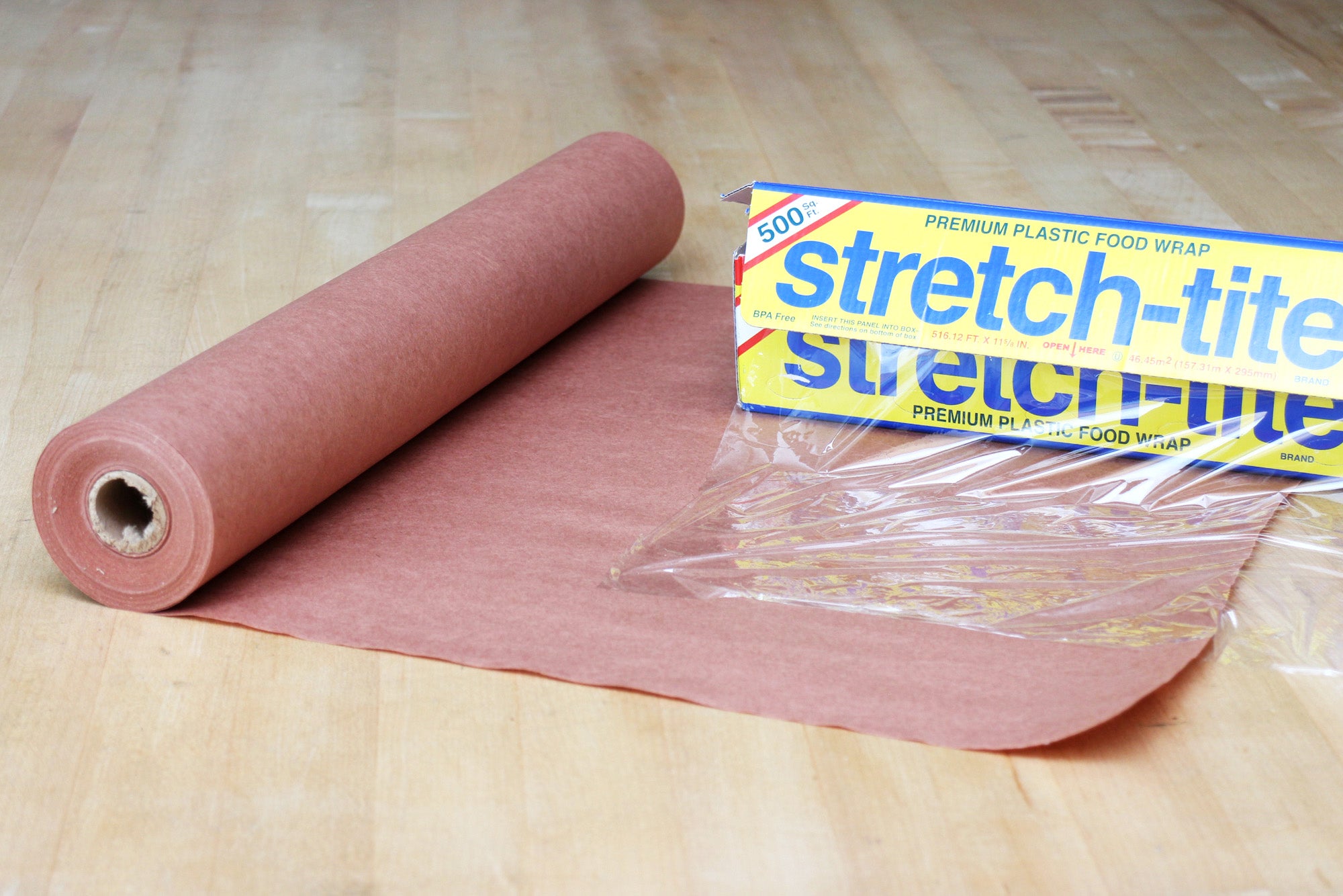 While the final layer of glaze is freezing, cut large squares of butcher or freezer paper (enough for all your fillets) and then cut a square of plastic wrap for each paper square.