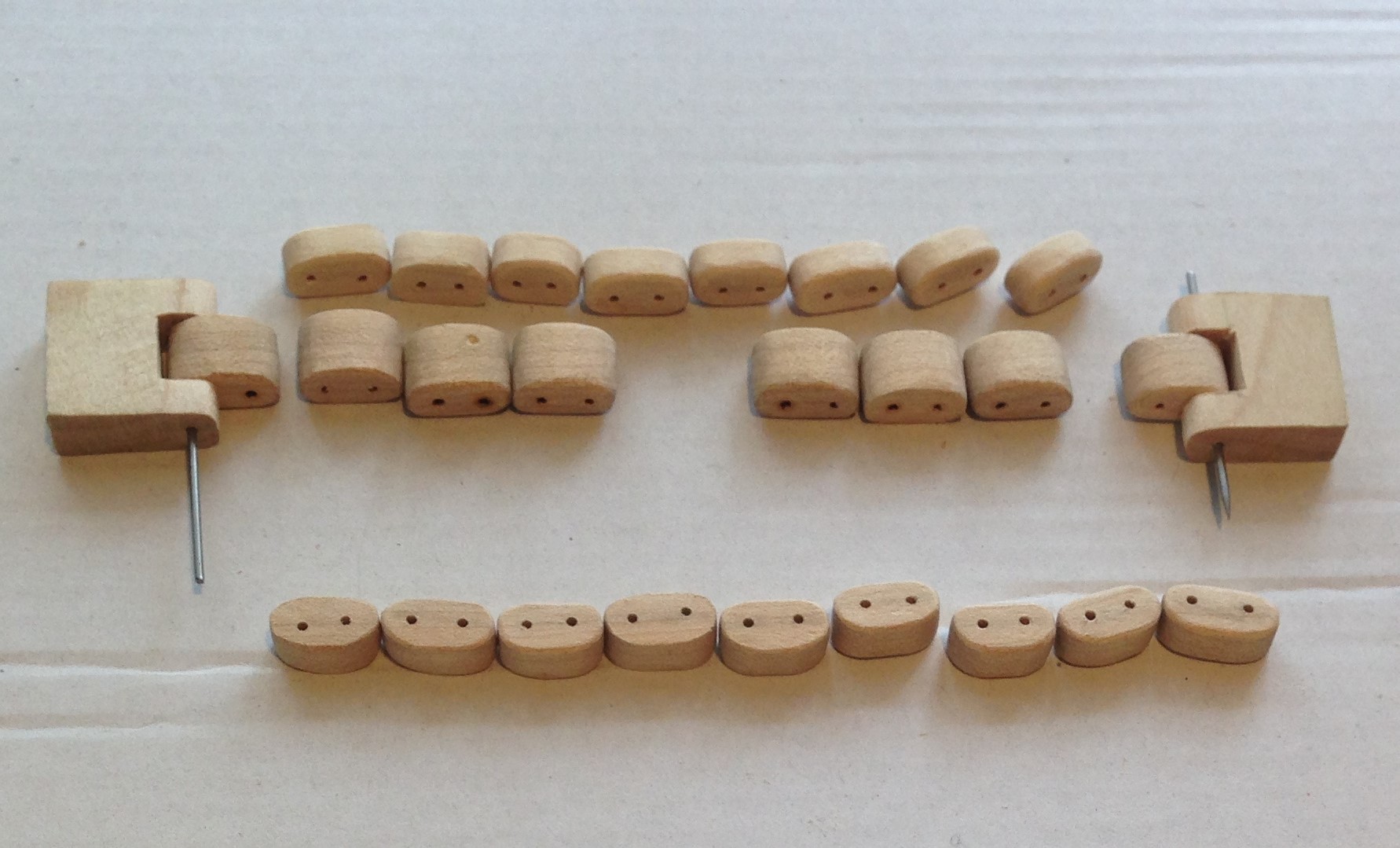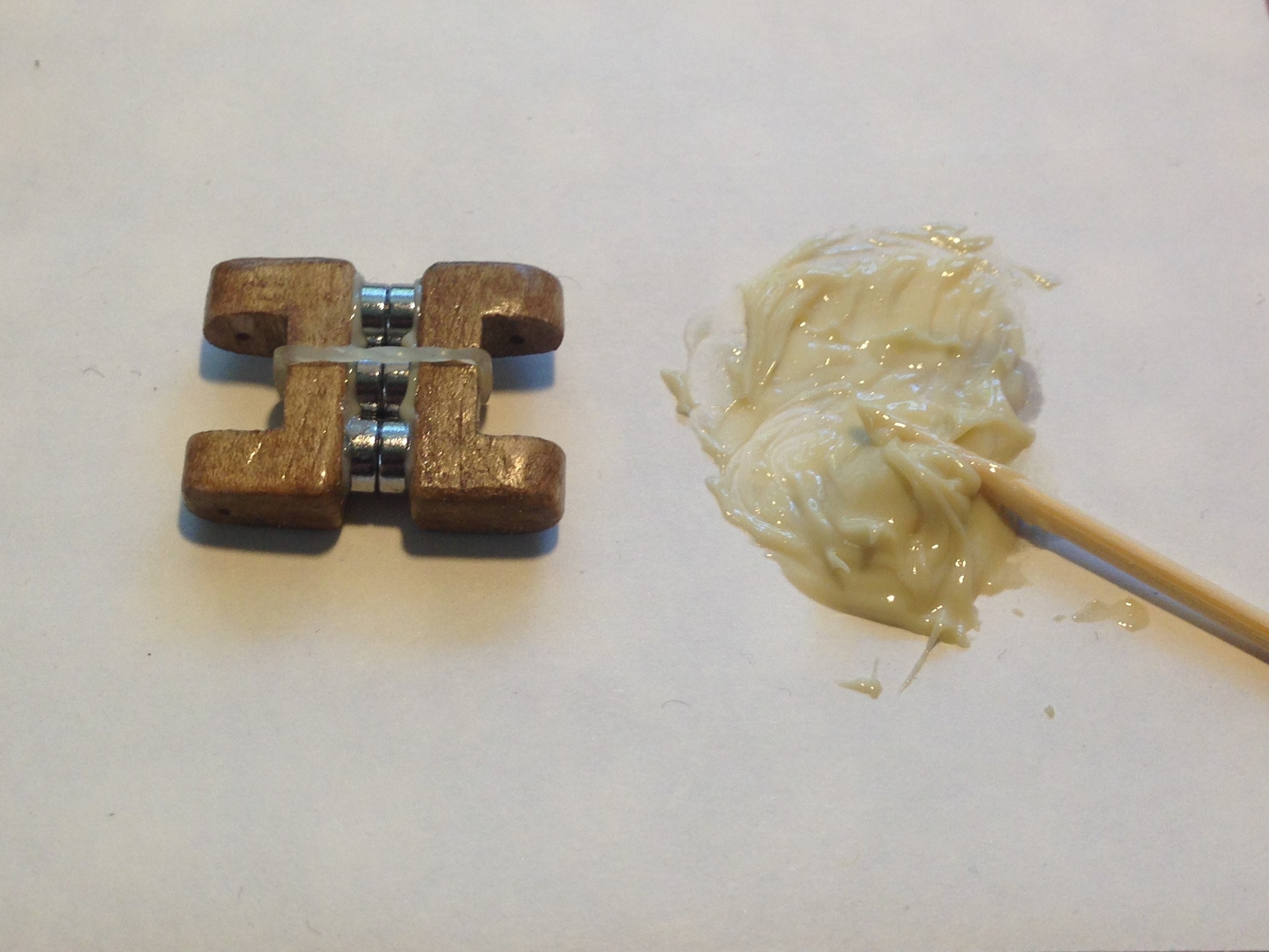 To connect them you will need to cut the stapler nails to size. Simply clamp the piece of the nail you want in the pliers and press at the other end. The nail just breaks off. Glue one in each left hole.