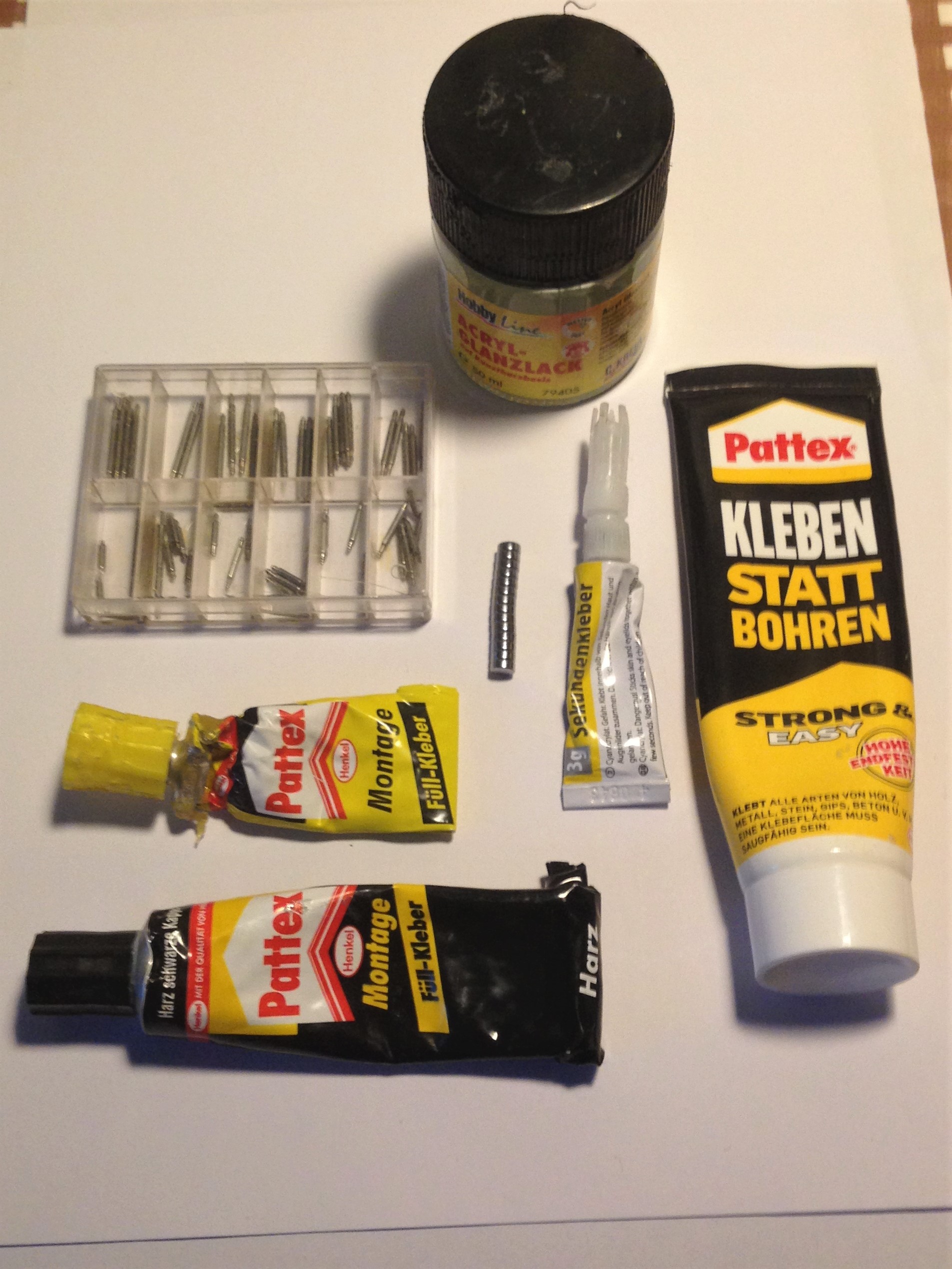 - Installation glue ("Kleben statt Bohren"='gluing instead of drilling')