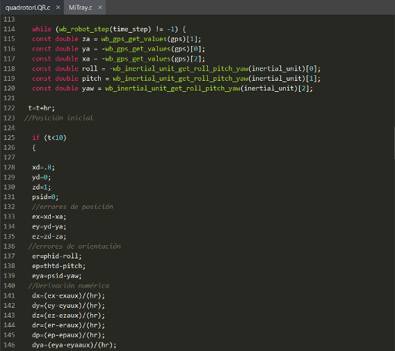 Aquí se programó el funcionamiento del controlador que estabiliza el dron, así como también la trayectoria necesaria.