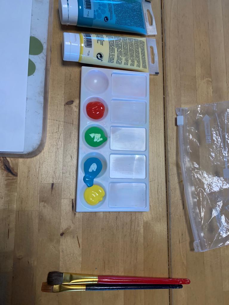 With the acrylic paint you have that you have, start painting each geometric shape and make sure that you use a contrast of colours (Make sure when you’re switching colours you dip the brush into a cup of water then dab the water off with a paper towel)