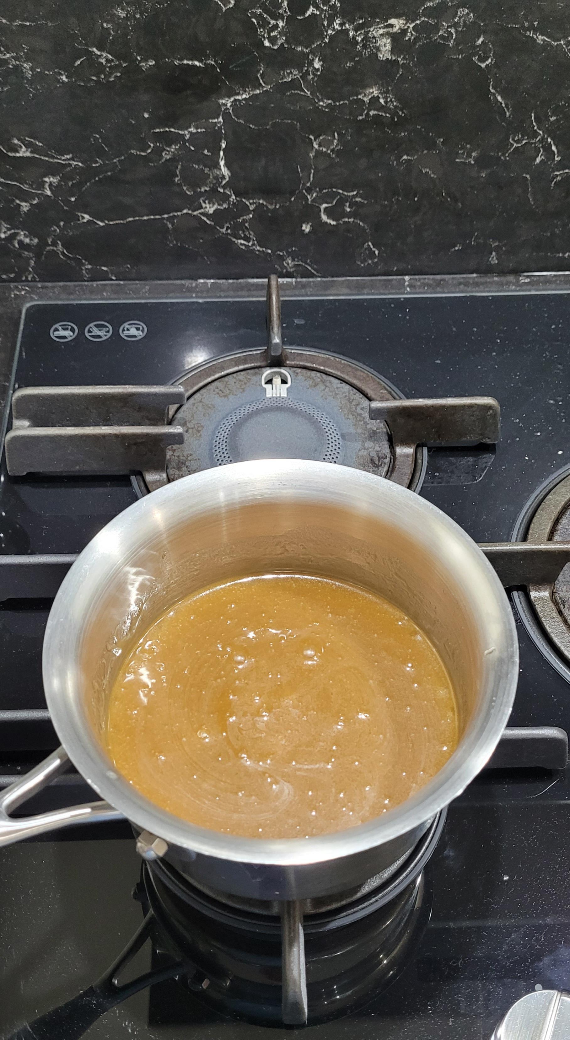 -Warm on the stove top over medium heat and whisk until the sugar and butter has dissolved, around 2-3 minutes