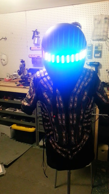 I'll be adding a set of additional instructables to go over how to add and integrate additional hardware to the suit like real time audio analysis and spectrum analyzing, NES Powerglove suit control, and using acceleromters and gyroscopes to give some unique forms of control to your new suit. Here's a couple videos showing different phases of the suit and some of the different hardware integration's.