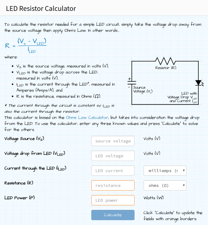 or you don't even need any if you use 2x AA batteries (3V) and green, blue or white LEDs