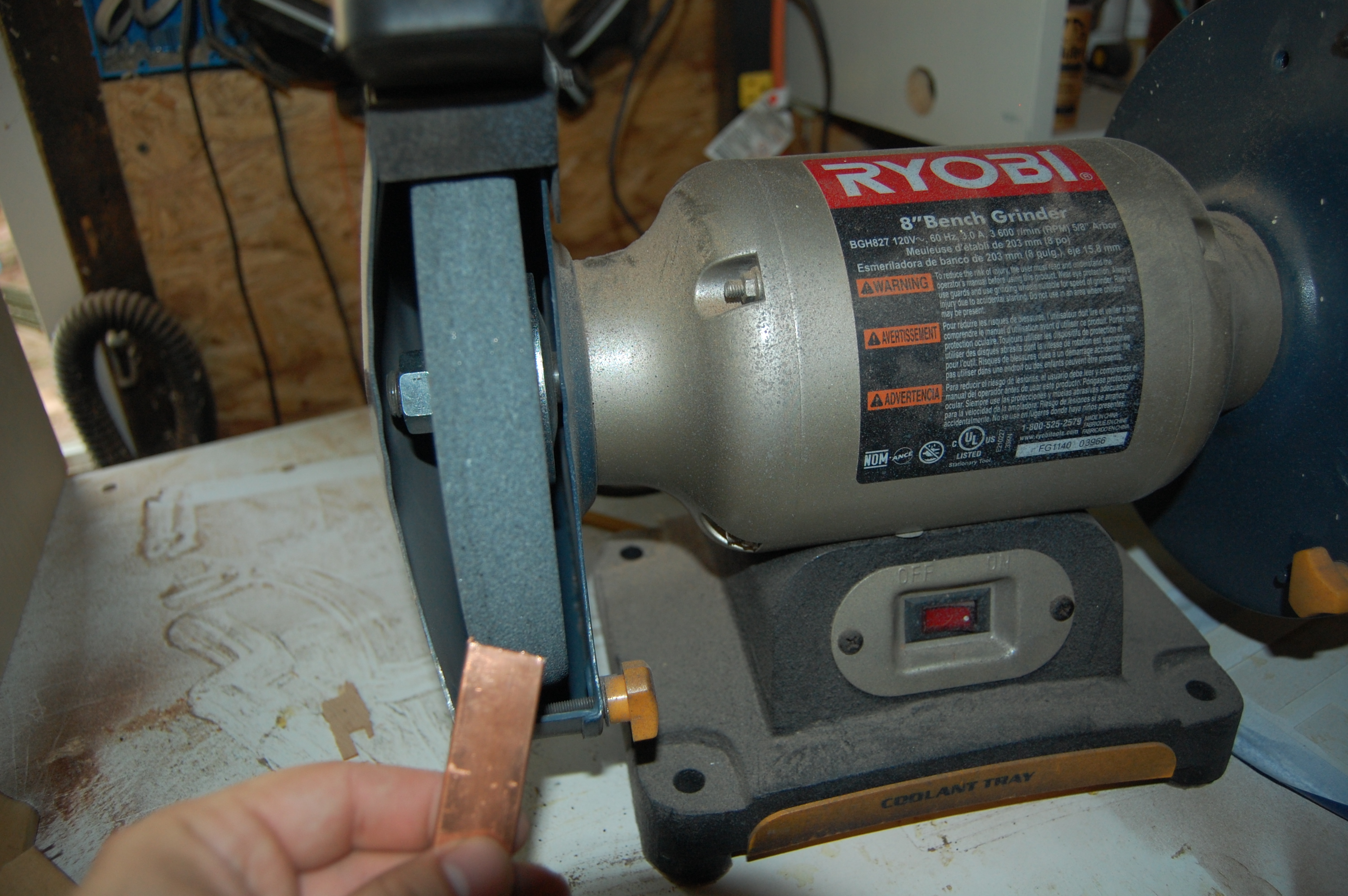 The first step in the process is to grind down the edges to the copper, any rough stuff can be taken off with the file or the grinder, if you have a grinder it goes way faster...