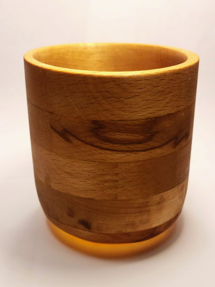 As I was sanding the cylinder it occurred to me that it was going to be very tough to custom cut a piece of wood to fit the bottom of the cylinder and seal it off without showing gaps. I tried for consistency but I knew the cylinder varied in its inner diameter and I wasn't going to perfectly match that. So I decided to cast the bottom of the cup with epoxy. Suddenly this got much easier.