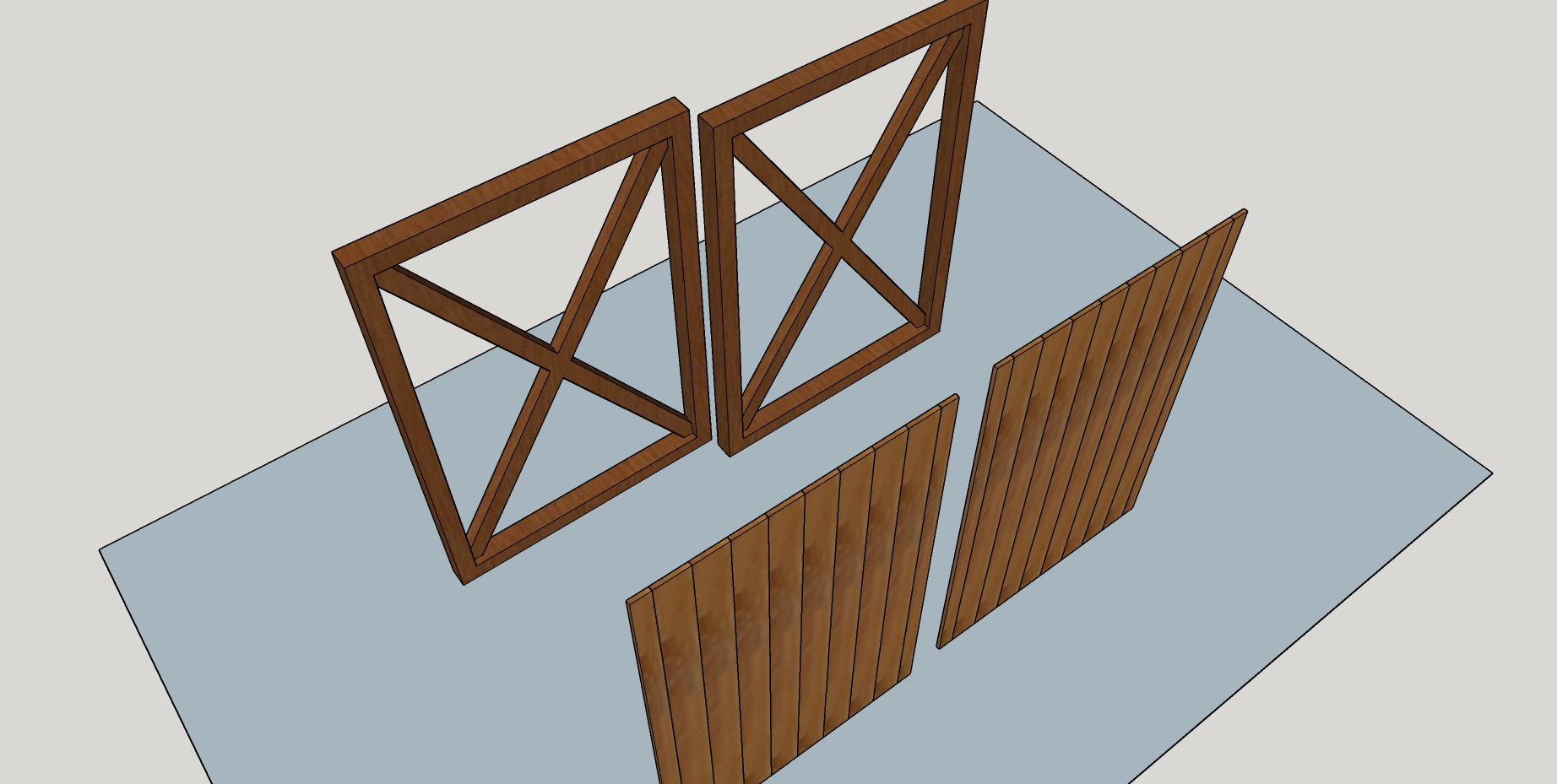Then I started sketching out the gate, using the measurements I made on site and keeping the width and depth of my wood in mind. the sketch-up is then the guide for the whole build. I originally planned to make a cross at the back - as you can see in the drawings - but as I was building the gate I opted to make a square subframe instead of the cross.