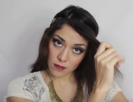Grab thin or thick sections of hair and introduce them in your hairband from the upper part and pulling it under the headband. Grab the piece of hair that came out and grab another section to repeat this step.