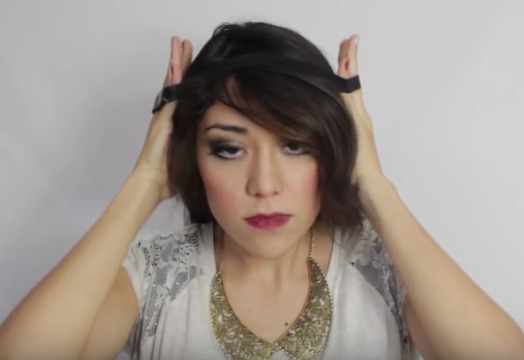 Take the headband off starting in the back with the last sections of hair you curled.