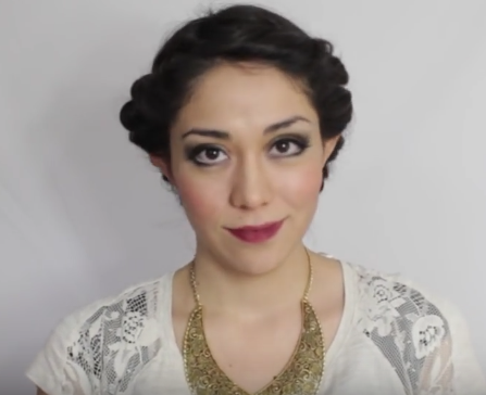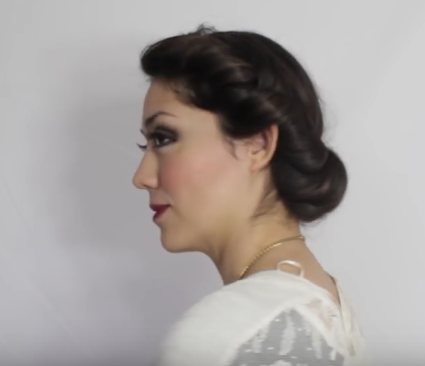 Keep doing this all around your head until you get to the back. Roll up the last piece of hair and introduce it inside the headband. This is how your hair should look by now.