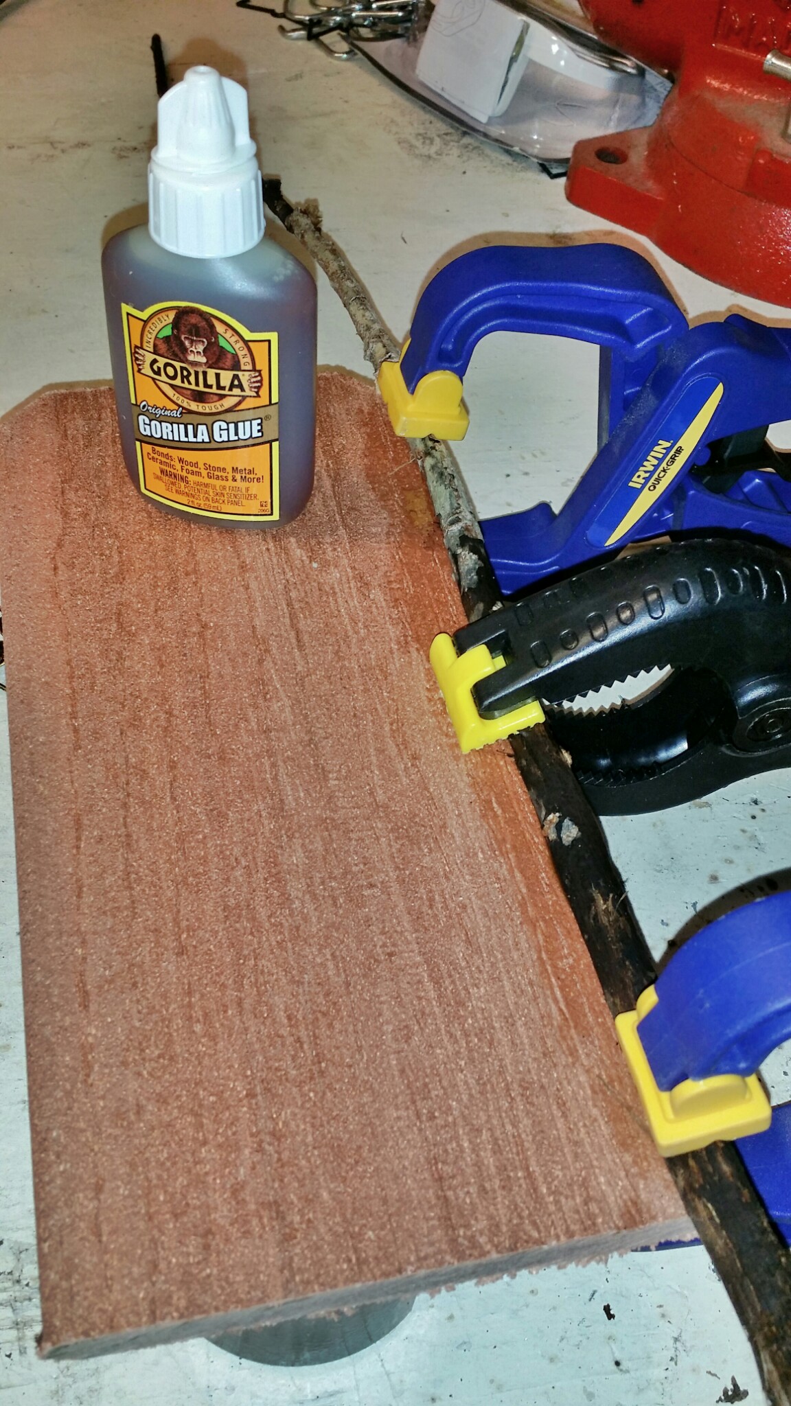 I had plenty of twigs and wood scraps from a recently trimmed tree, and picked up a bottle of Gorilla Glue to put it all together.