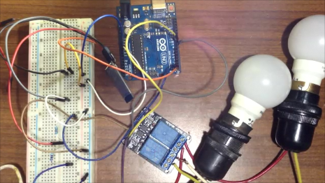 We make use of a Relay(an electromagnetic switch)which provides isolation between the high (the BULB) and low (the ARDUINO) voltage circuit.