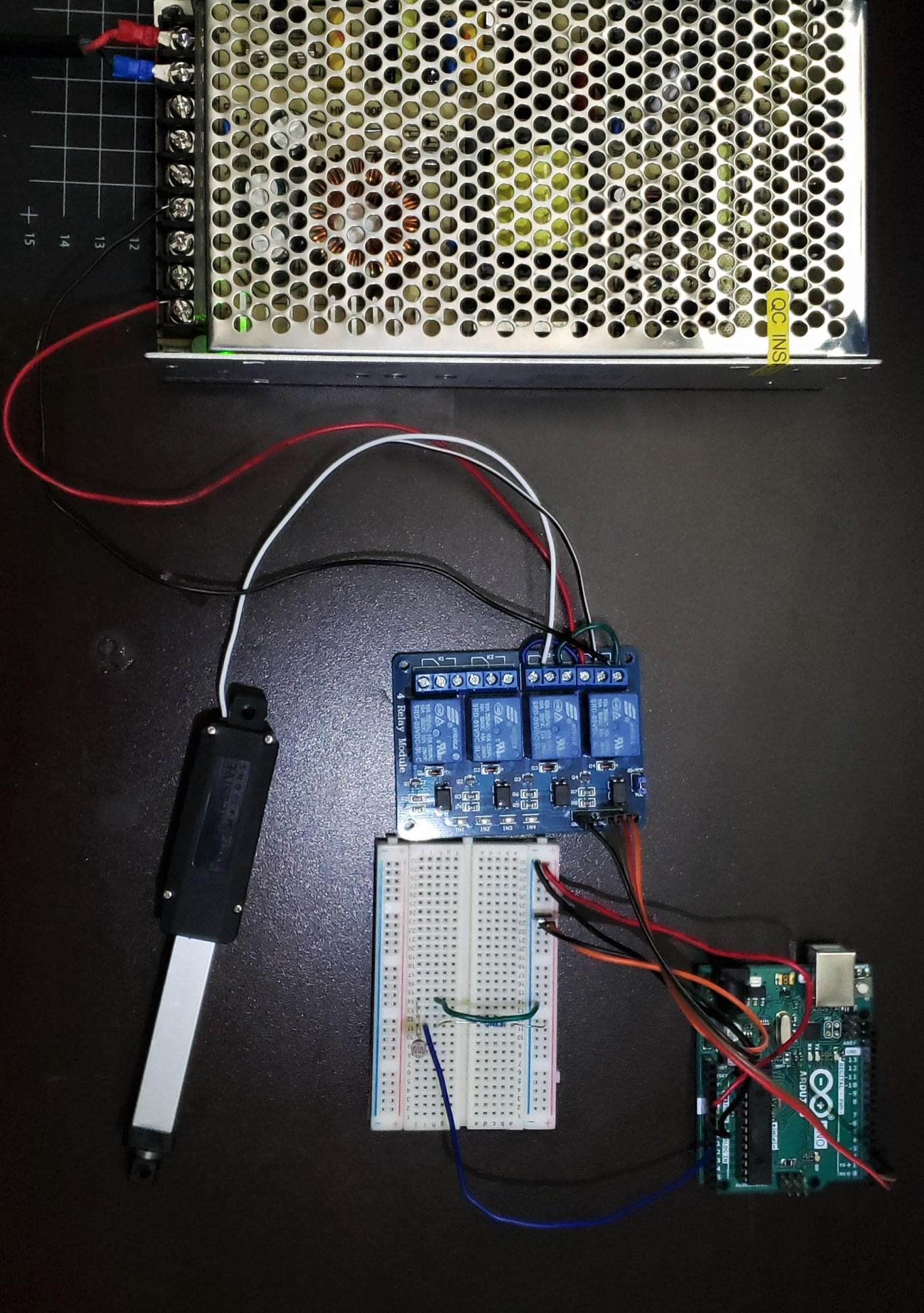The functionality of the provided code below is meant to be as simple as possible. When there is light, the actuator will retract. When it is dark, the actuator will extend (or vice versa depending on the wiring). To prevent the actuator from being triggered unintentionally, (if someone walks by and blocks the light, or if a flash of lighting is picked up by the sensor) the change from dark to light (or light to dark) must last at least thirty seconds. This delay can easily be changed by changing the value of “const int triggerDelay”.