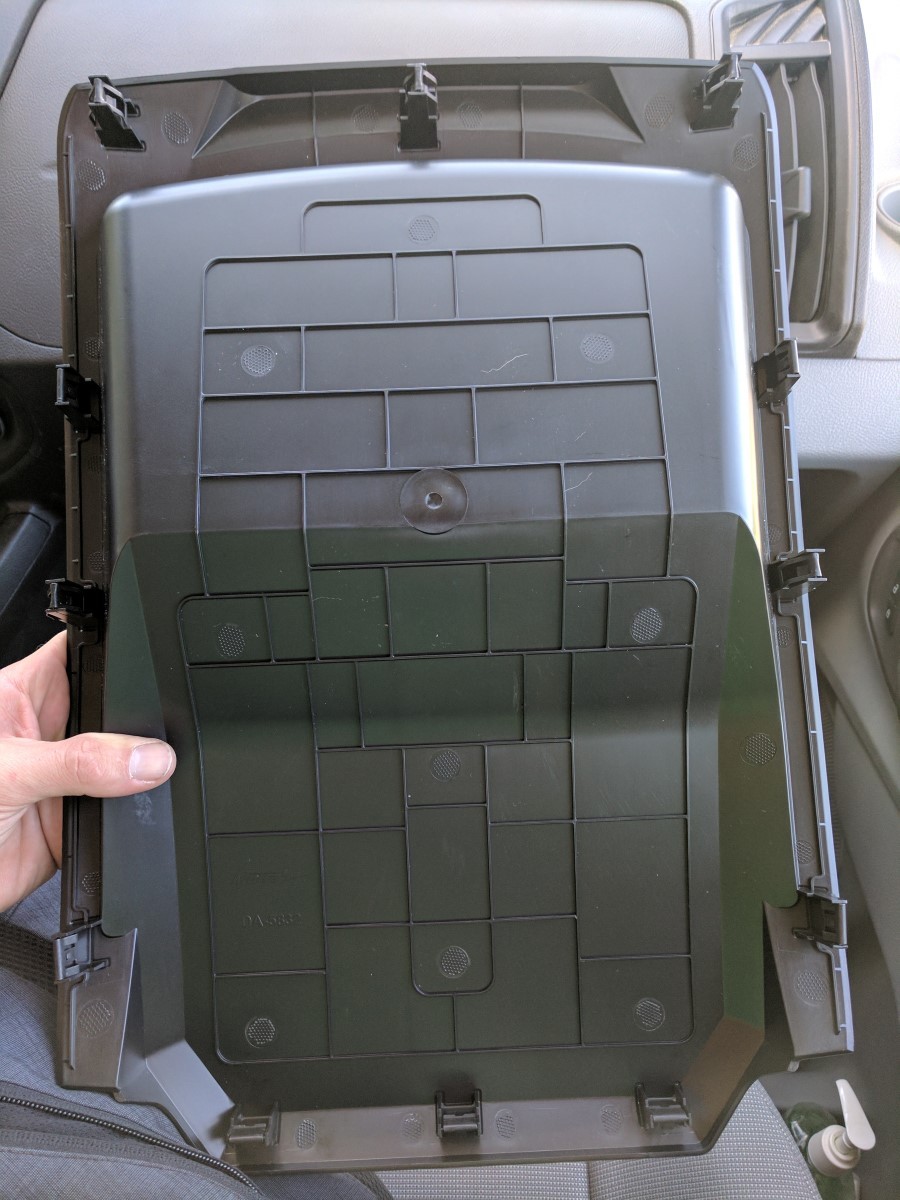 Remove one screw per side, then unclip the left & right vents. (edit: that’s the picture of the new Metra panel, but the factory panel is pretty much the same thing…)